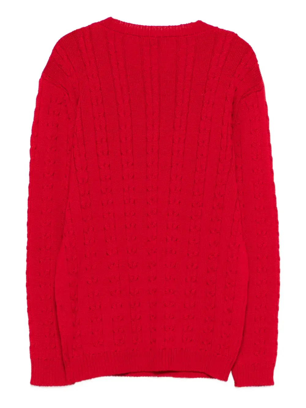 Красный вязаный свитер с круглым вырезом, длинными рукавами, ребристым подолом и манжетами