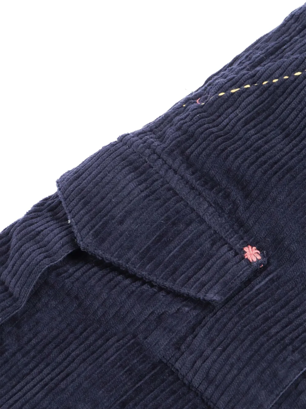 Тёмно-синий вельвет, фактура, накладные карманы, эластичный пояс, подогнутый край, вышитые детали