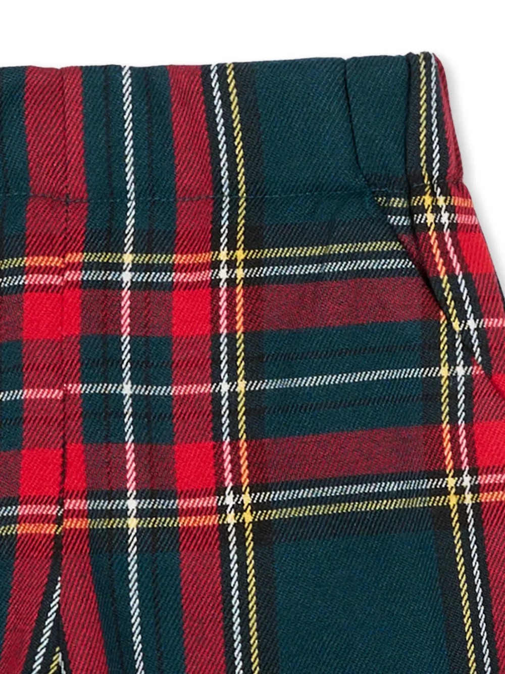 Красный и многоцветный тартановый узор, эластичная поясная резинка, карманы