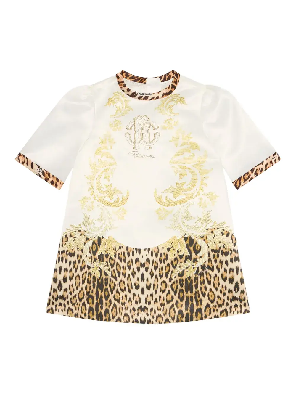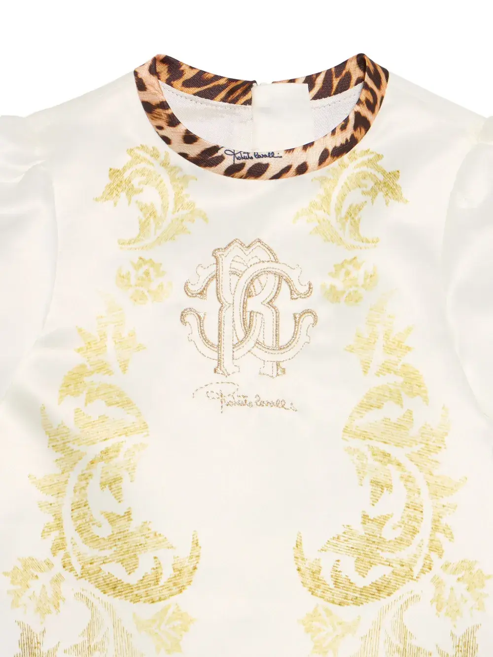Атласное платье с принтом Roberto Cavalli Junior, белый