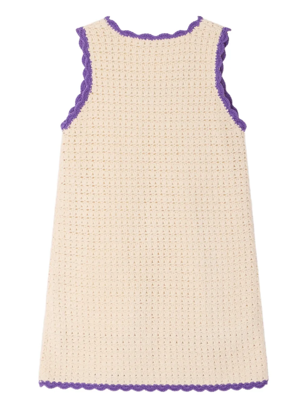 Платье в технике кроше с накладным карманом Bonpoint, белый