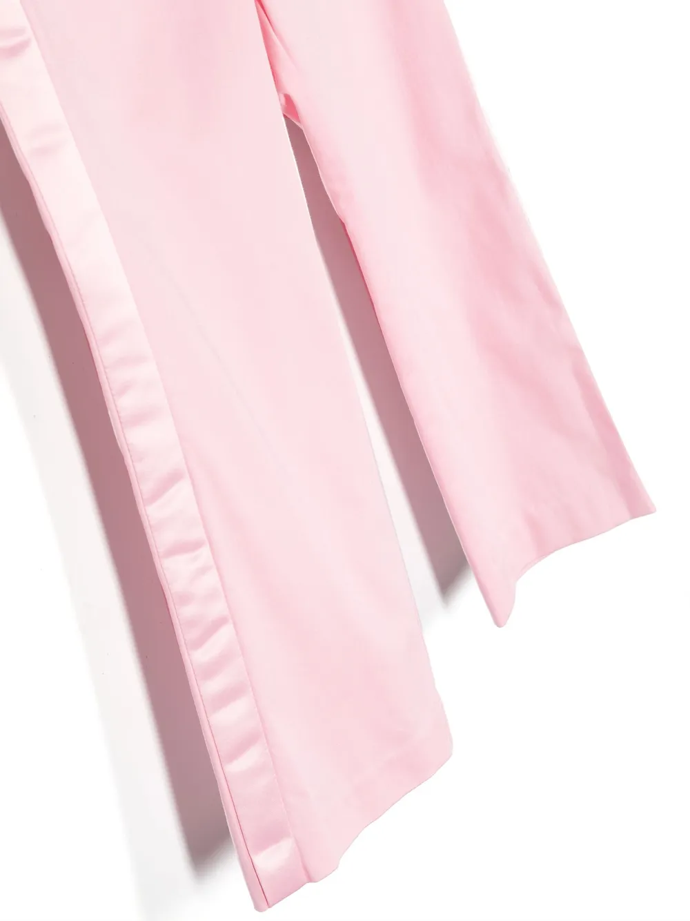 Светло-розовый, смесовый хлопок, металлический логотип, петли для ремня, потайная застежка на молнии и пуговицах, прямой крой и прямой подол.