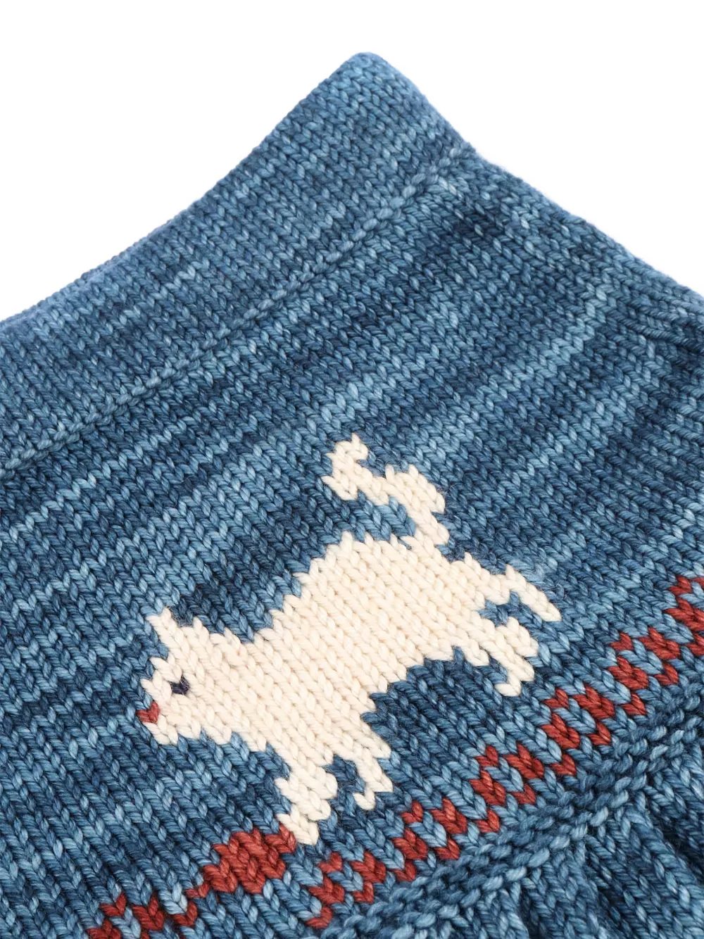 Синий интарсийный узор, вязаная конструкция, эластичный пояс, плиссированный дизайн