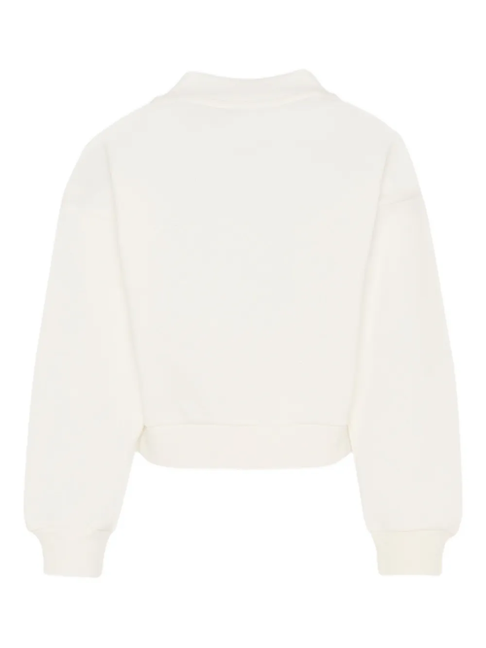 Белый свитшот с принтом логотипа, круглым вырезом, длинными рукавами, ребристым низом и манжетами