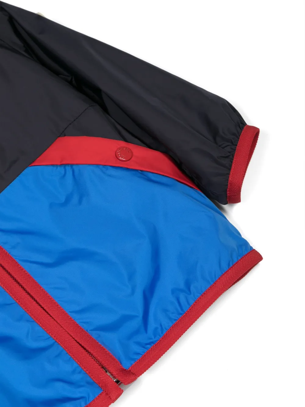 Темно-синий, красный, голубой, хлопок, дизайн колор-блок, легкий материал, классический капюшон, застежка на молнии спереди, два боковых кармана с застежкой на кнопки, контрастная отделка, длинные рукава, нашивка с логотипом на рукаве, эластичные манжеты и прямой подол.