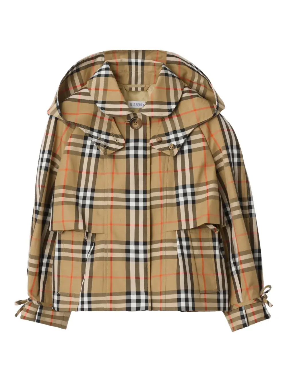 Плащ с капюшоном Check Burberry Kids, бежевый
