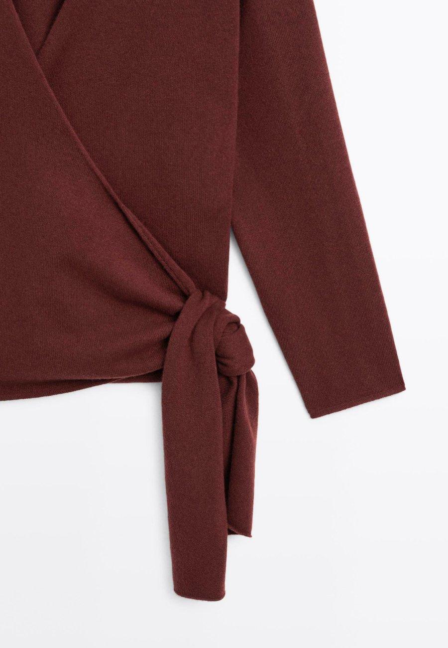 Застежка в виде запаха с завязками. V-образный вырез. Длинные рукава. Кардиган из 100% шерсти. Вырез горловины: Каше-керМатериал и уход