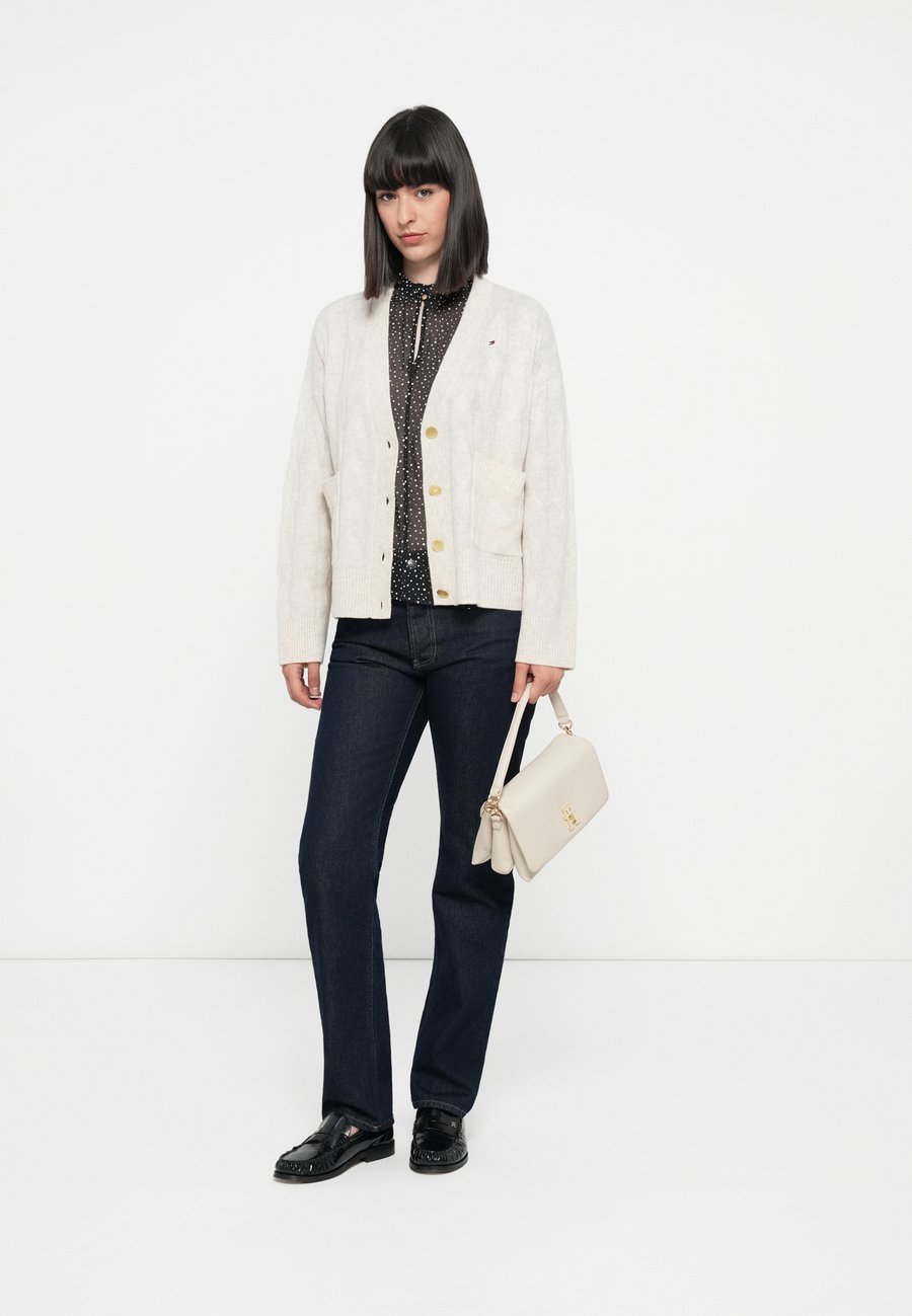 Небольшая этикетка на уровне груди, накладные карманы. Вырез горловины: низкий V-образный.Материал и уход