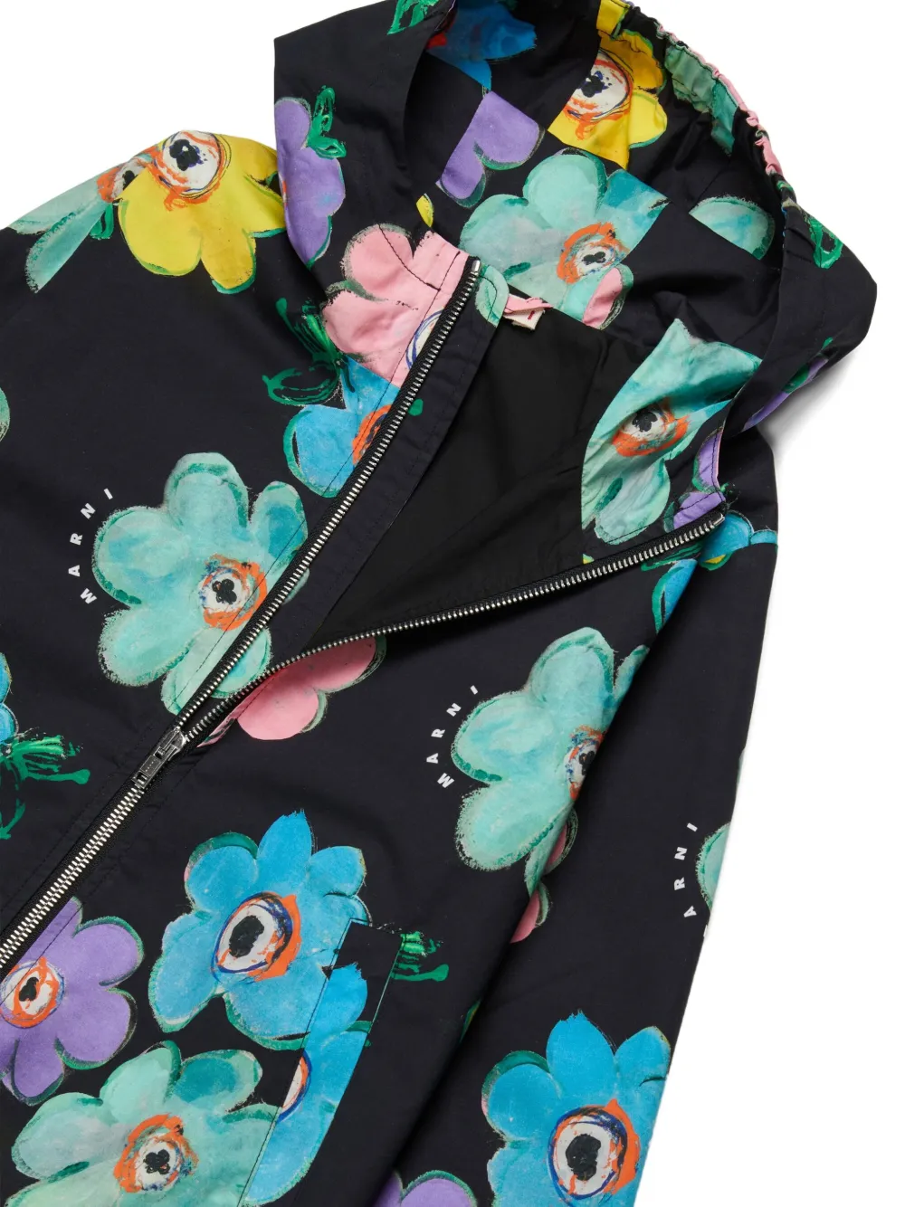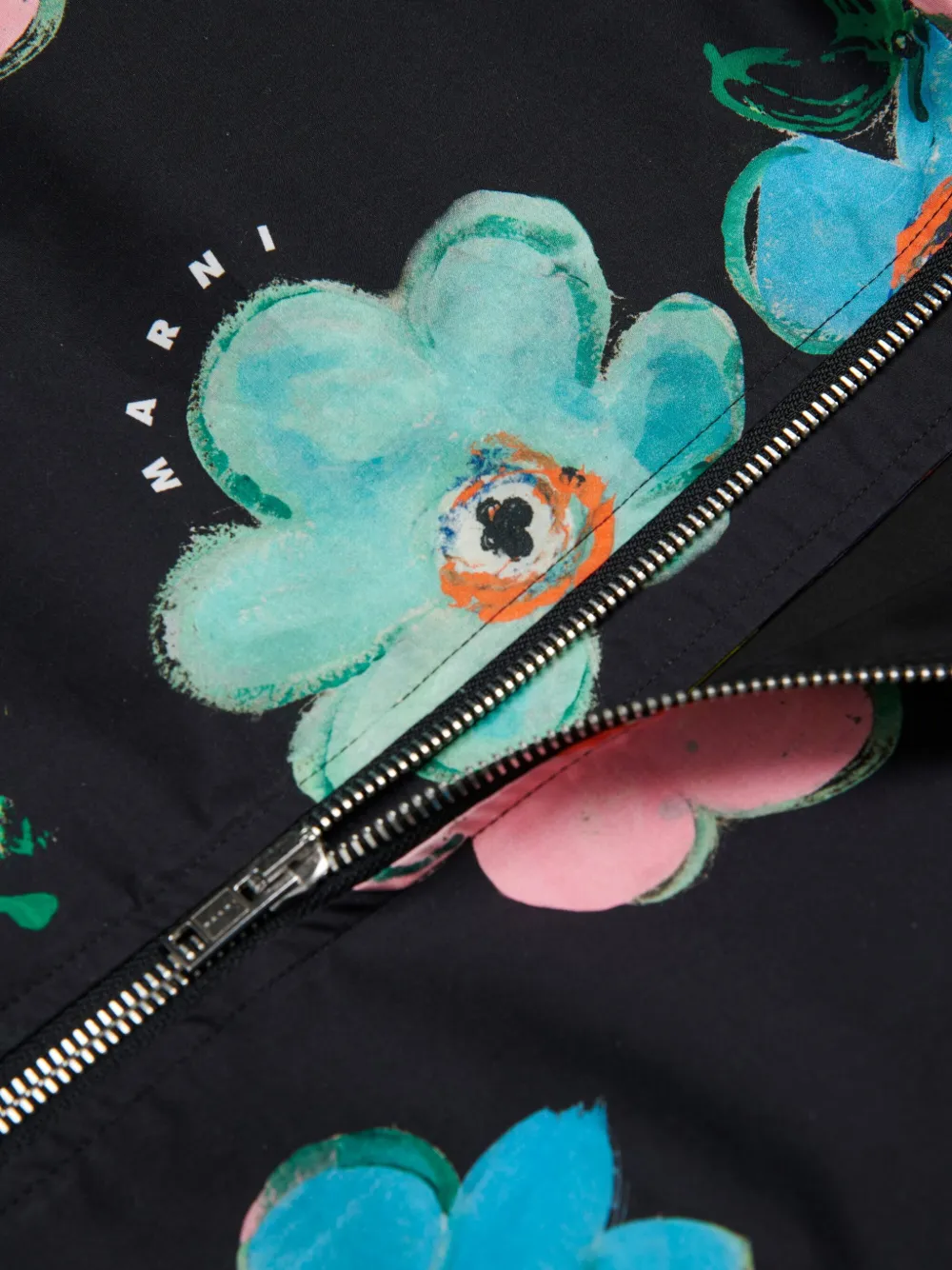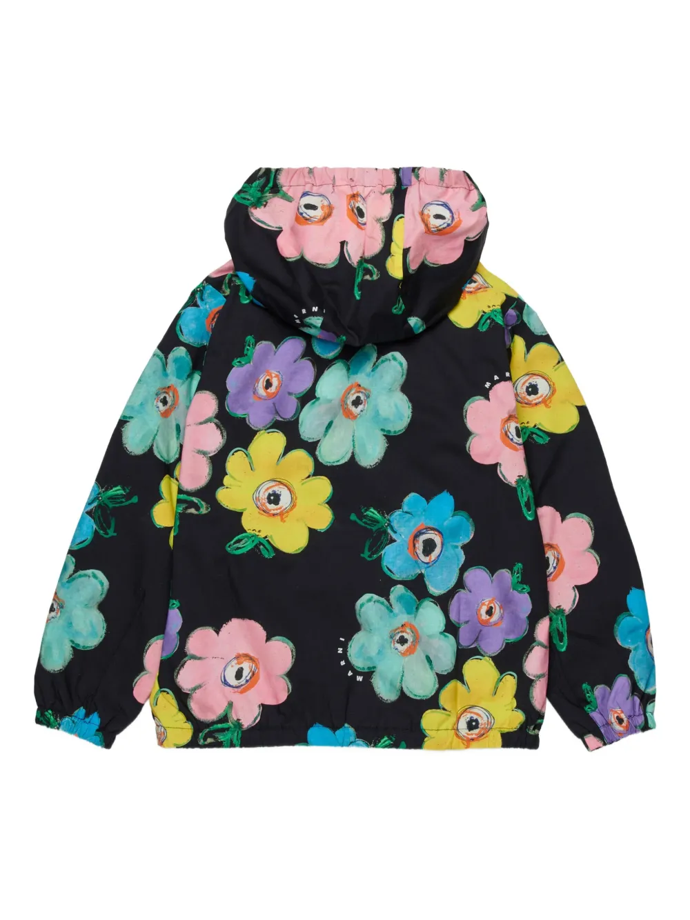 Бомбер с капюшоном и цветочным принтом Marni Kids, черный