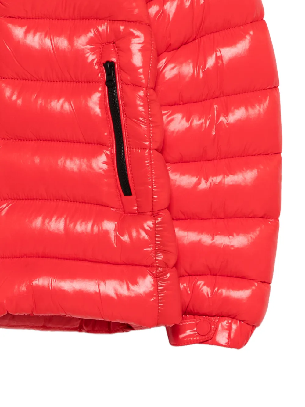 Красный, стеганый дизайн, застежка-молния спереди, боковые карманы на молнии, длинные рукава, капюшон