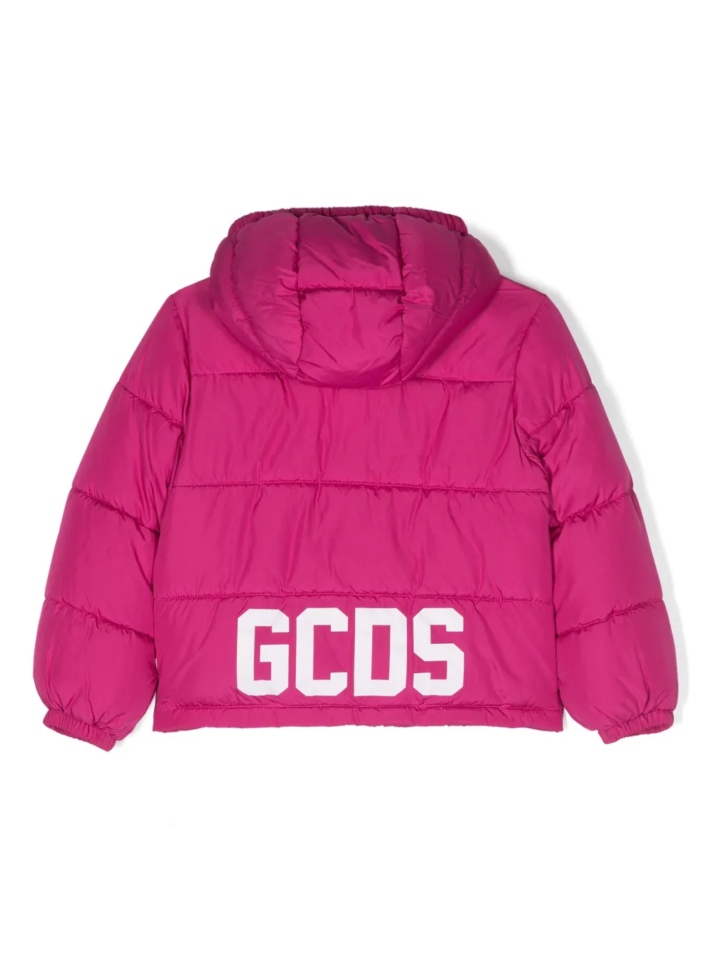 Пуховик с капюшоном и логотипом Gcds Kids, розовый