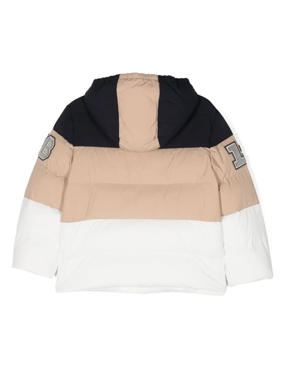 Пуховик в стиле колор-блок Brunello Cucinelli Kids, белый