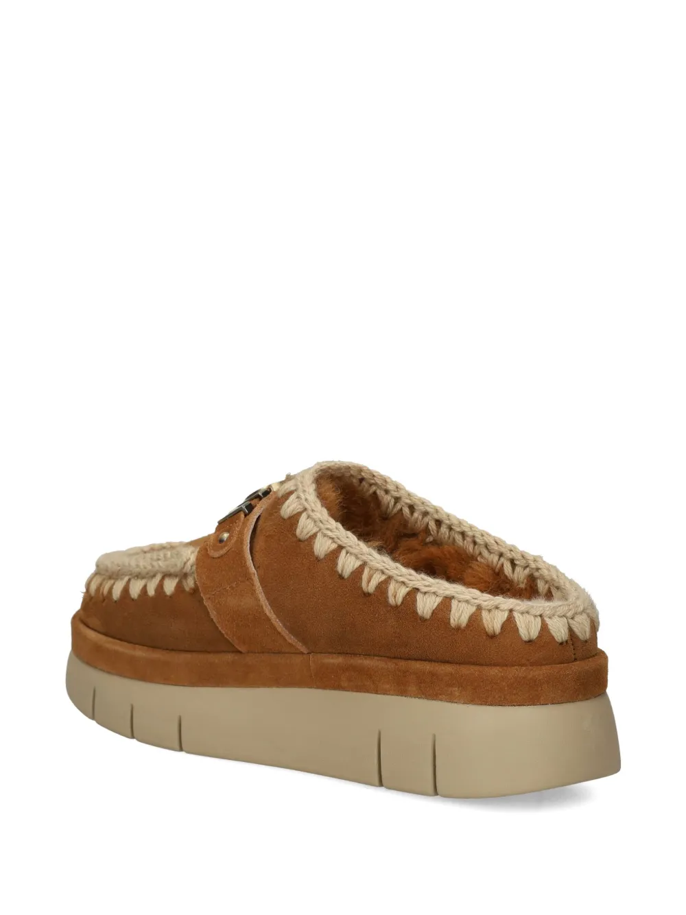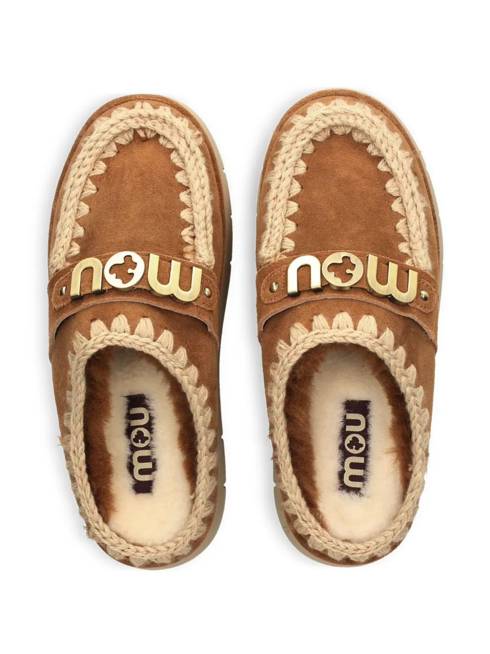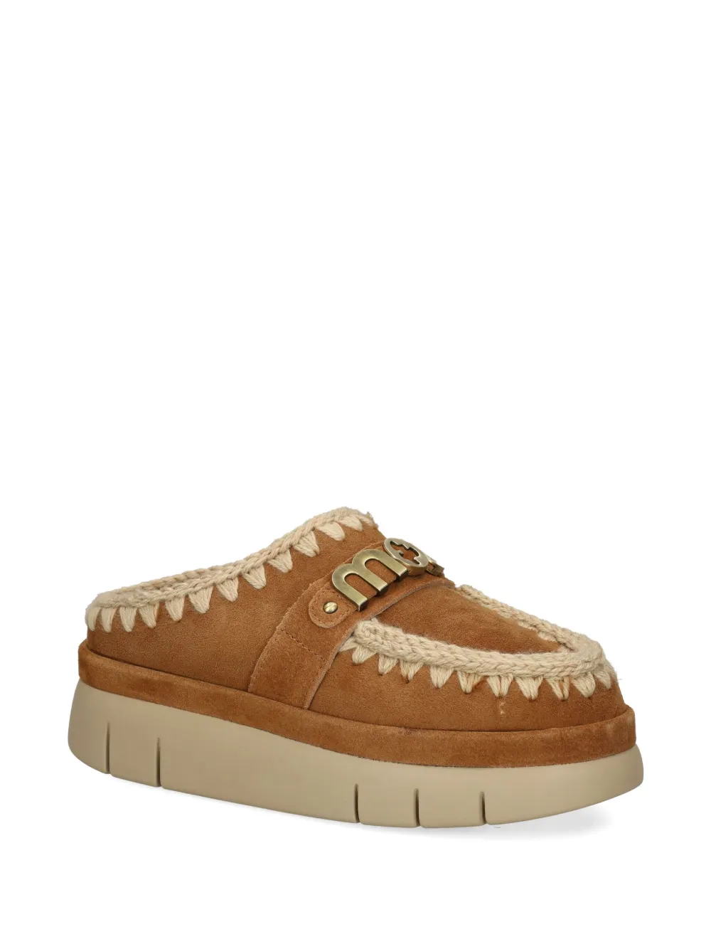Мюли с декоративной строчкой и логотипом Mou, коричневый