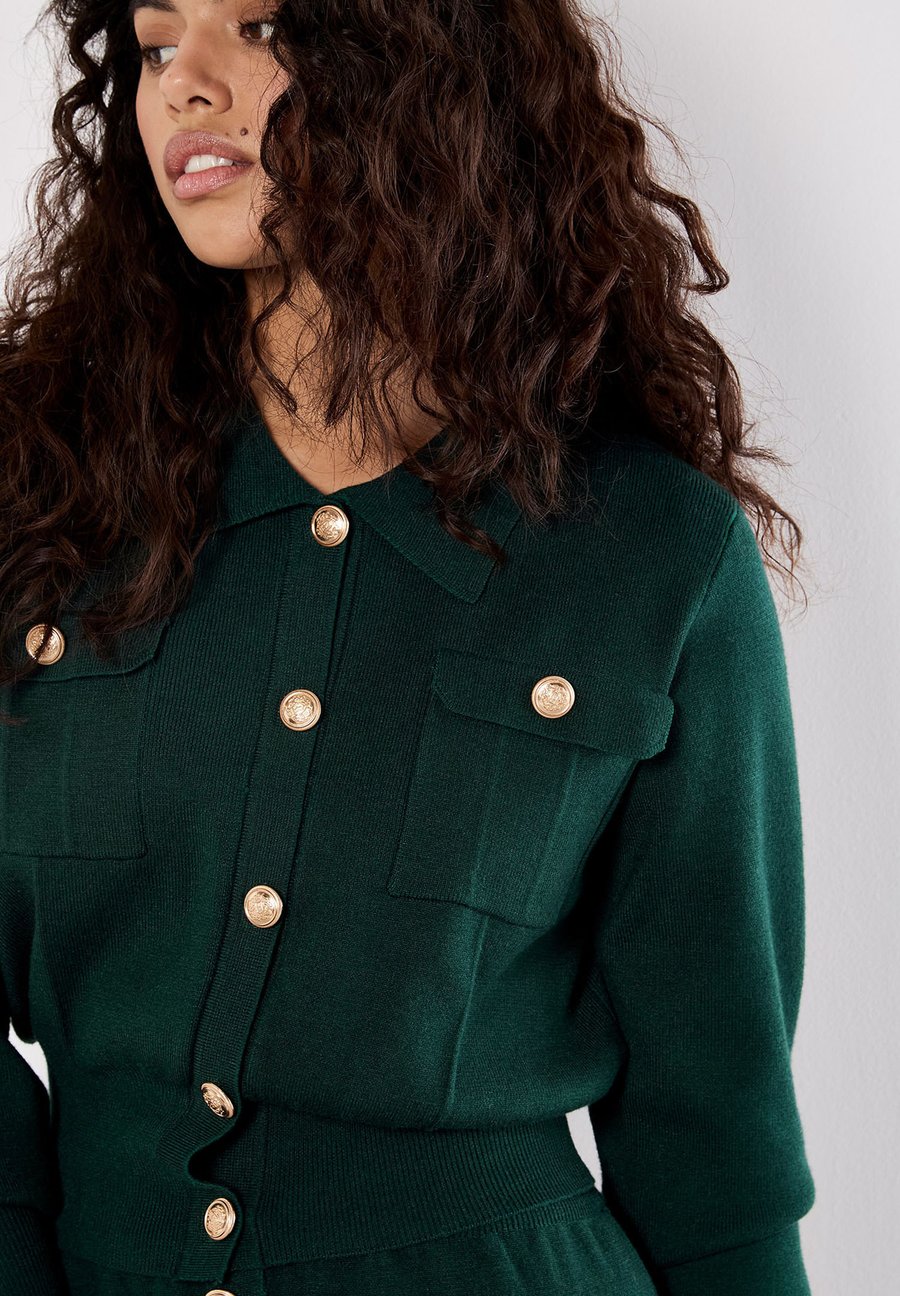 Дополните свою коллекцию трикотажных изделий этим шикарным кардиганом в рубчик. Изготовленный из легкой вязки, он имеет воротник, два накладных кармана и застежку на золотые пуговицы. Сочетайте с подходящей юбкой для создания гармоничного образа. Воротник: Отложной воротникМатериал и уход