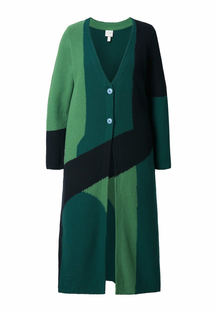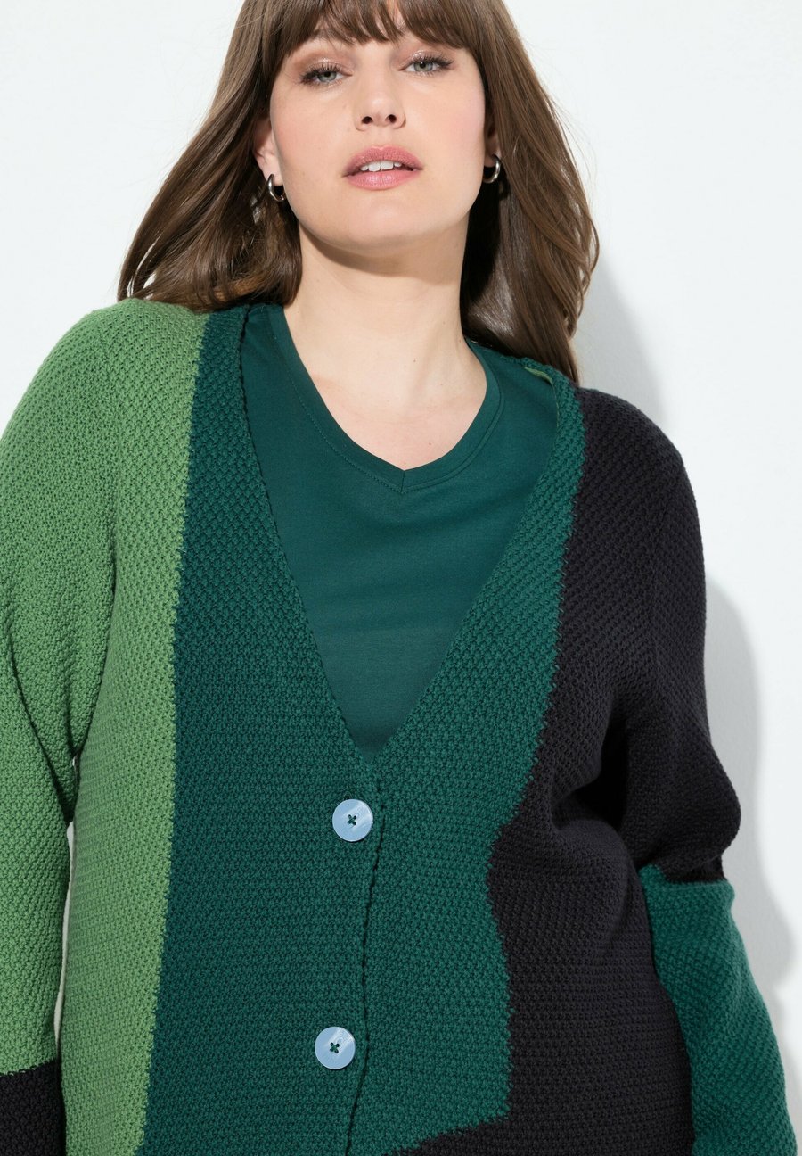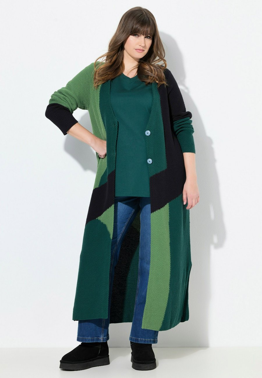Кардиган Ulla Popken LONG- STRUKTUR V-AUSSCHNITT, Emerald Green/Green