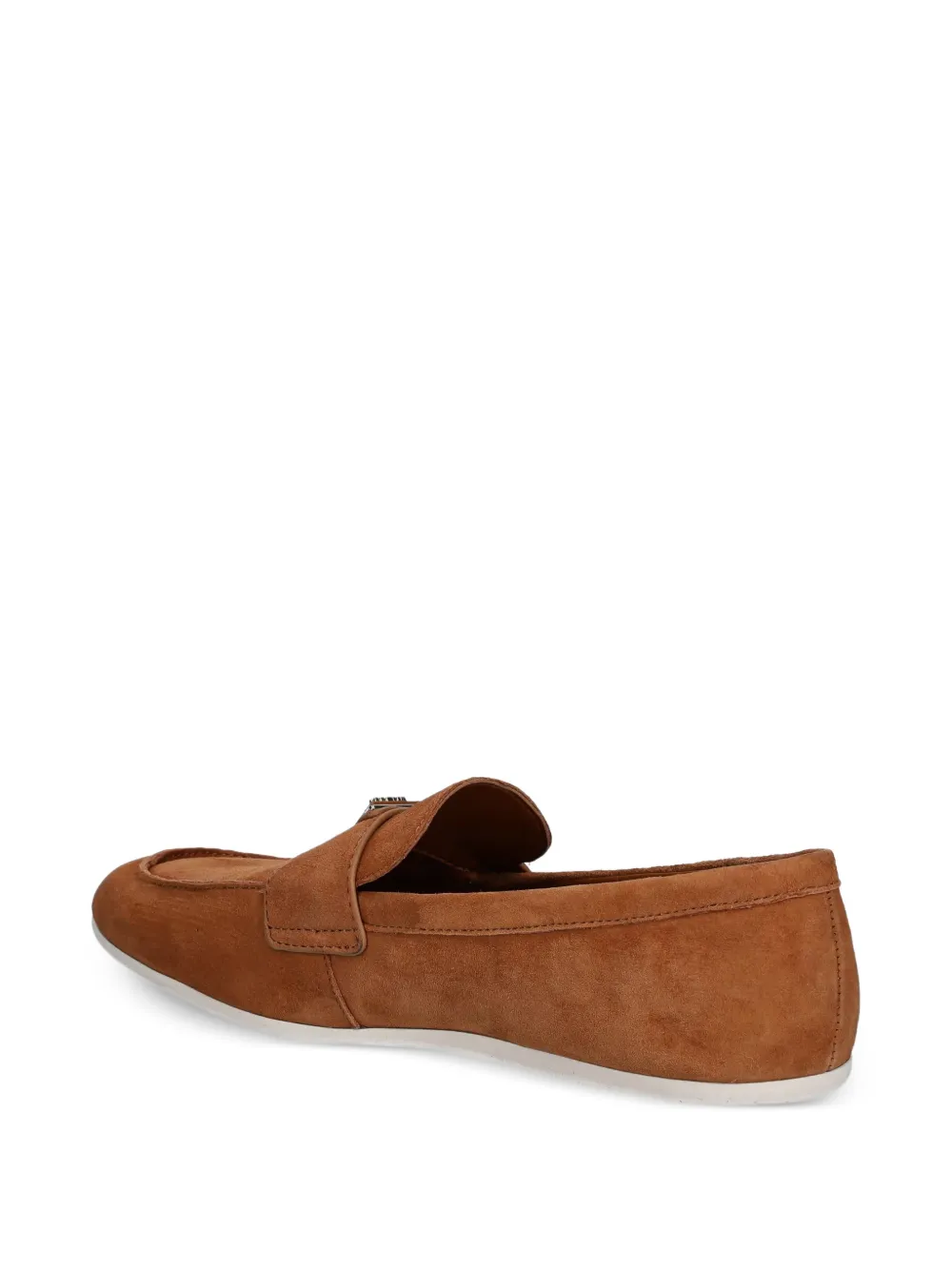 Светло-коричневые слипоны с пряжкой, плоской подошвой, декоративной прострочкой и фирменной стелькой