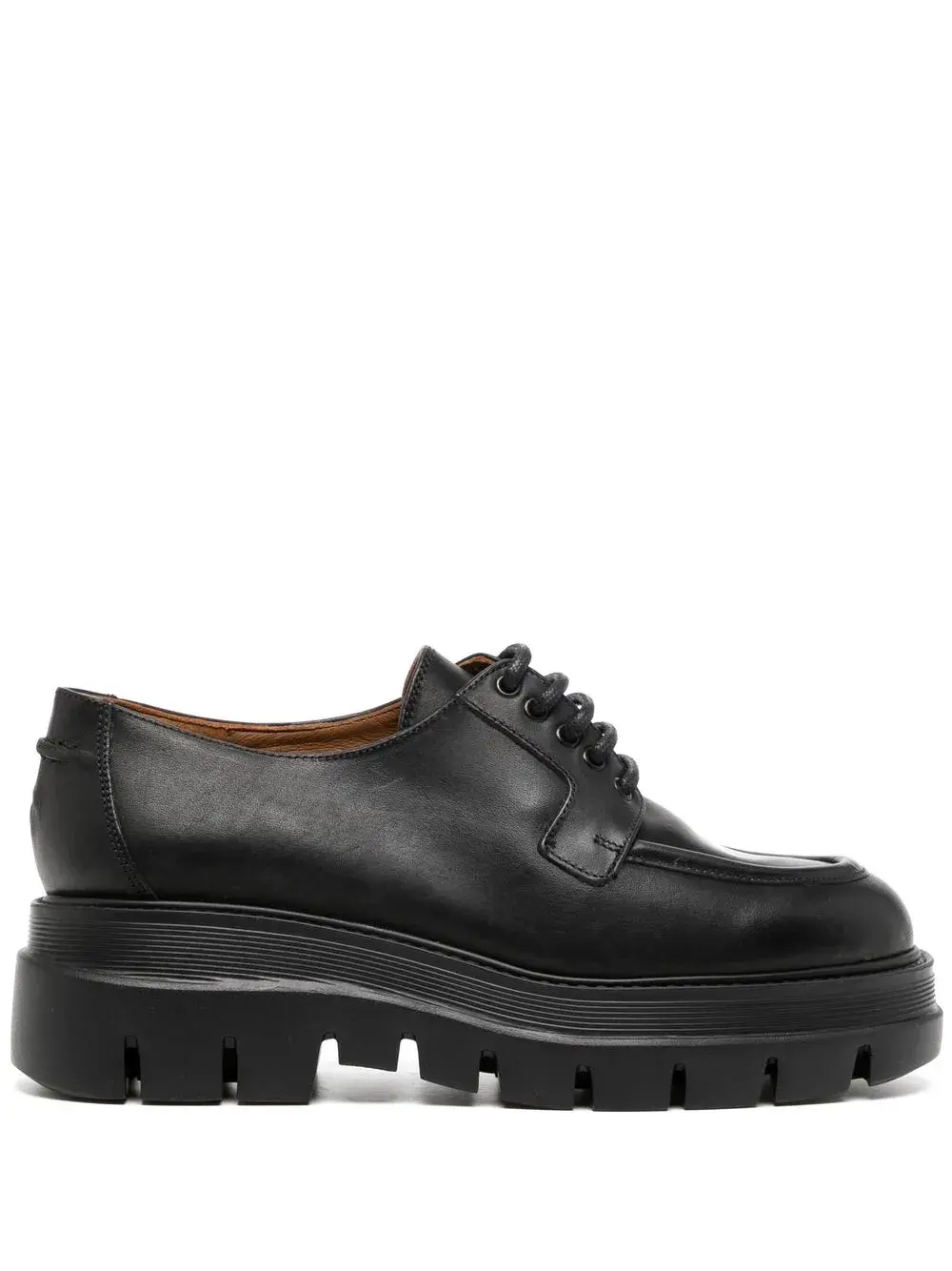 Черный, кожа, массивная резиновая подошва c протектором, шнуровка спереди, кожаная стелька с логотипом и закругленный носок. Ответственный выбор: Мы объединились с агентством Good On You, которое оценивает бренды по степени их влияния на животных, людей и планету в целом. Этот бренд получил хорошую оценку, потому что поддерживает достойные условия труда на всех этапах цепочки поставок.