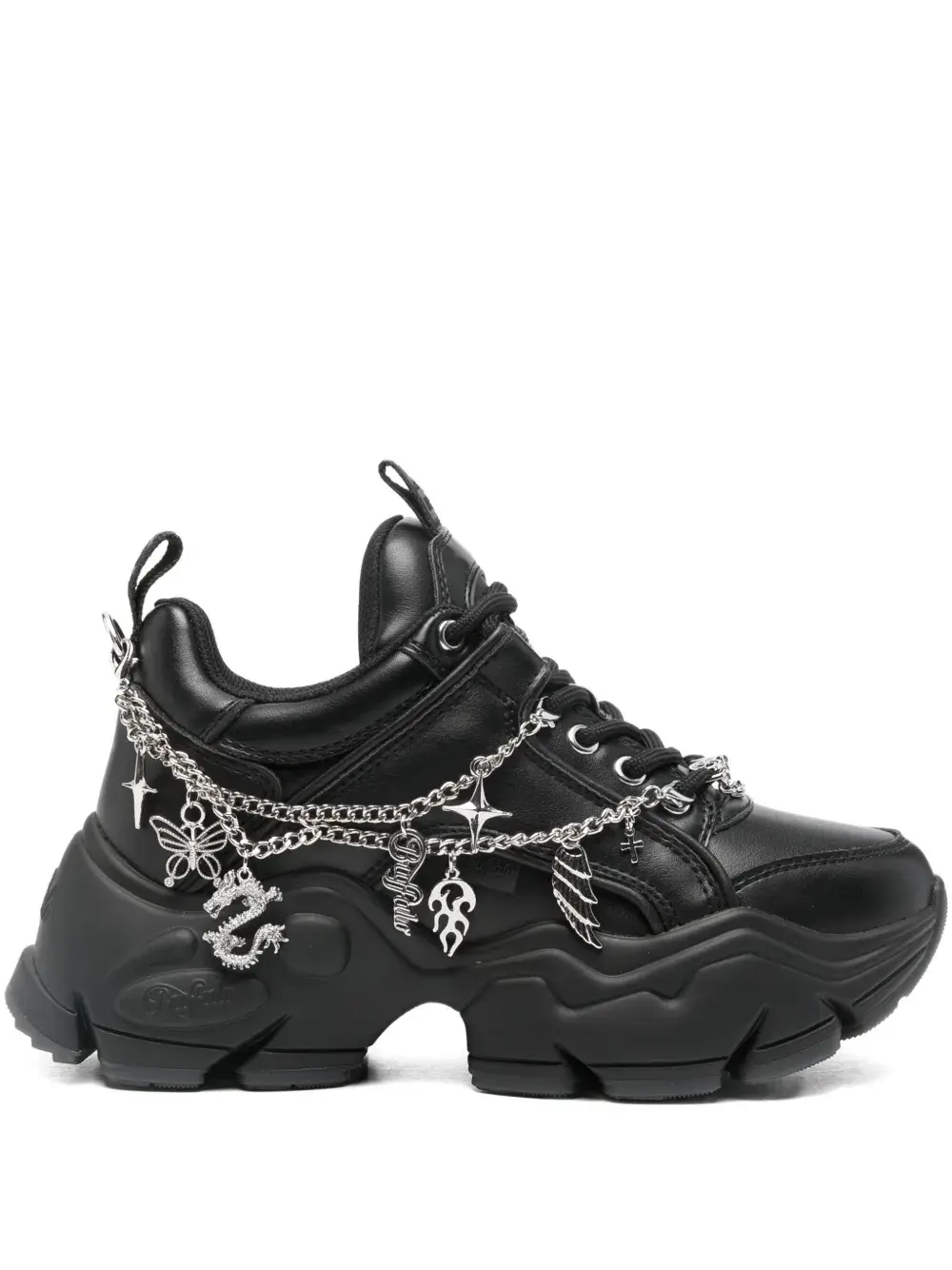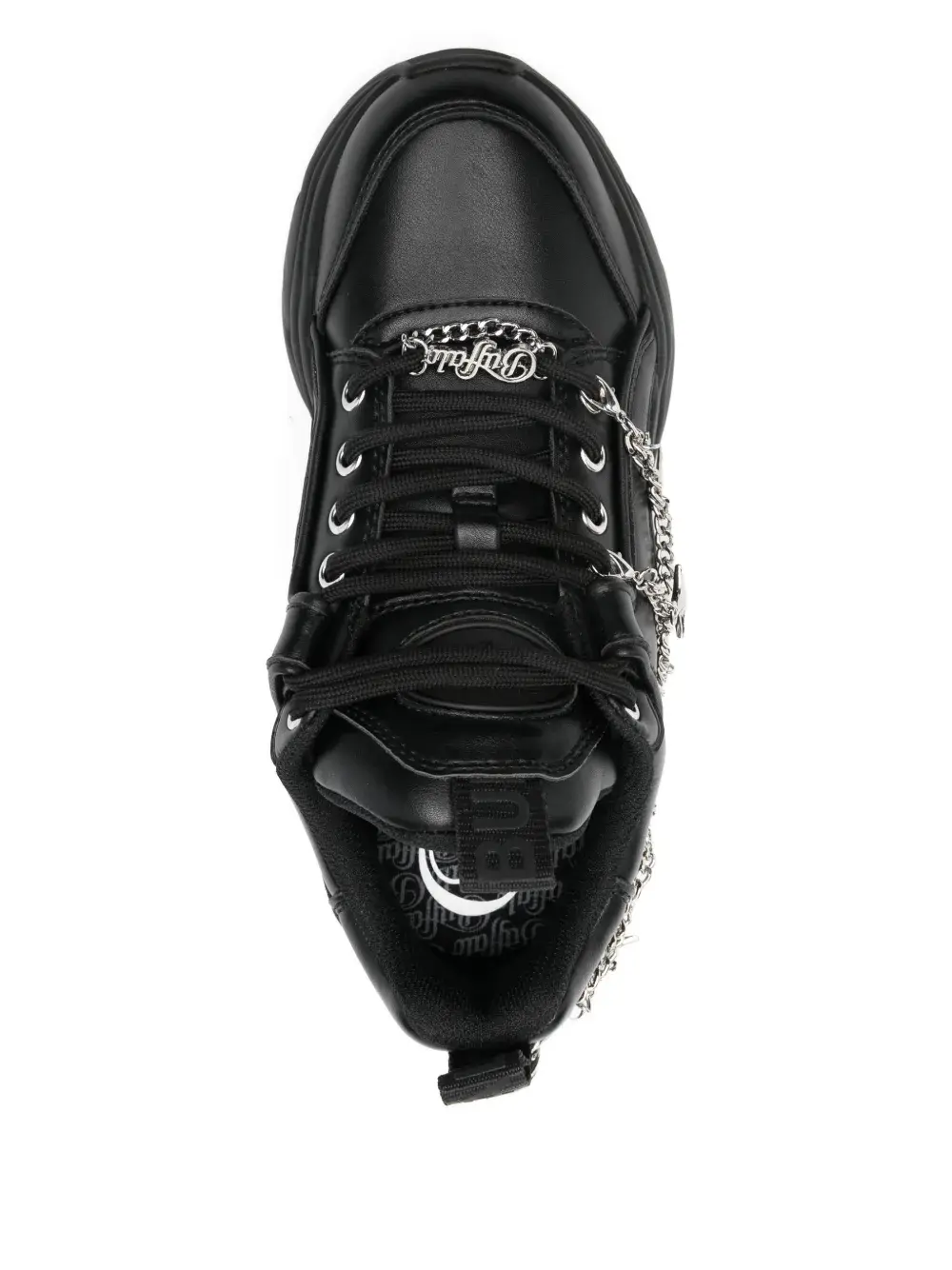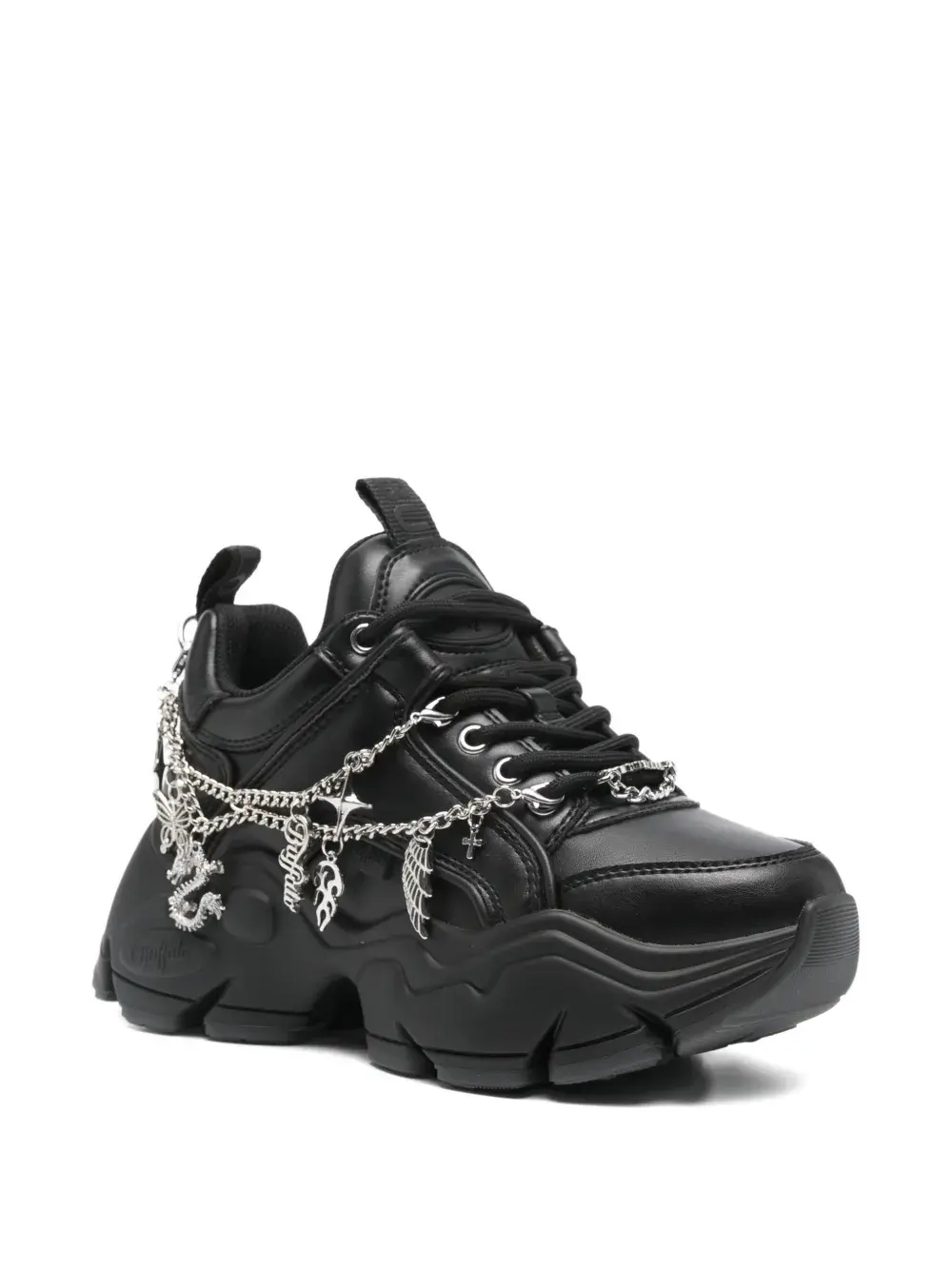 Чёрный, украшение-брелок, шнуровка, две петли для надевания, массивная подошва