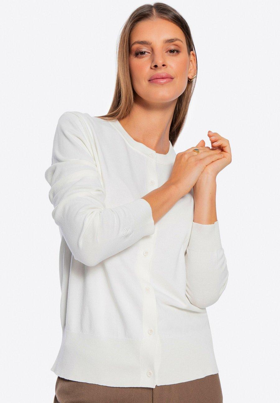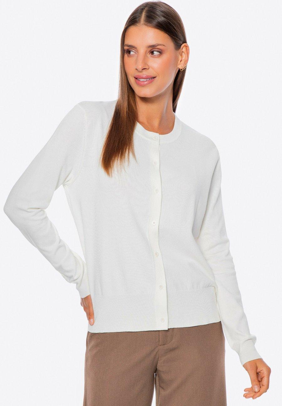 Женский кардиган - нежное ощущение и стиль на любой случай. Этот кардиган сочетает в себе мягкость и комфорт, которые вы будете ценить каждый день. Изготовленный из нежной смеси вискозы и нейлона, он удивительно легкий и приятный на ощупь. Застежка на пуговицы по всей длине позволяет носить его так, как вам нравится - расстегнутым для расслабленного образа или застегнутым для добавления нотки элегантности. Круглый вырез и длинные рукава с ребристыми манжетами подчеркивают классический, вневременной характер этой вещи, делая ее незаменимой базовой вещью в вашем гардеробе. Для кого он предназначен? Если вы ищете кардиган, сочетающий в себе легкость, комфорт и универсальный дизайн, эта модель оправдает ваши ожидания. Идеально подходит как для работы, так и для светских мероприятий. Наш совет: сочетайте кардиган с любимыми джинсами или классическими брюками. Он также прекрасно смотрится поверх платья или юбки, добавляя легкости и женственного очарования вашему образу. Дополните образ классическими балетками или элегантными лоферами, чтобы подчеркнуть женственность любого ансамбля. Вырез горловины: круглыйМатериал и уход