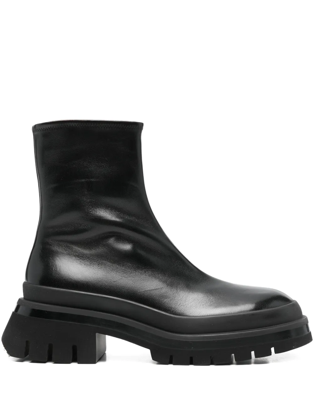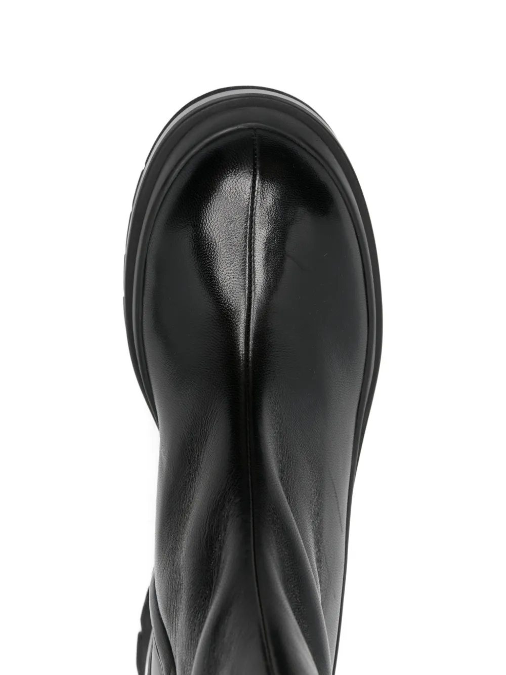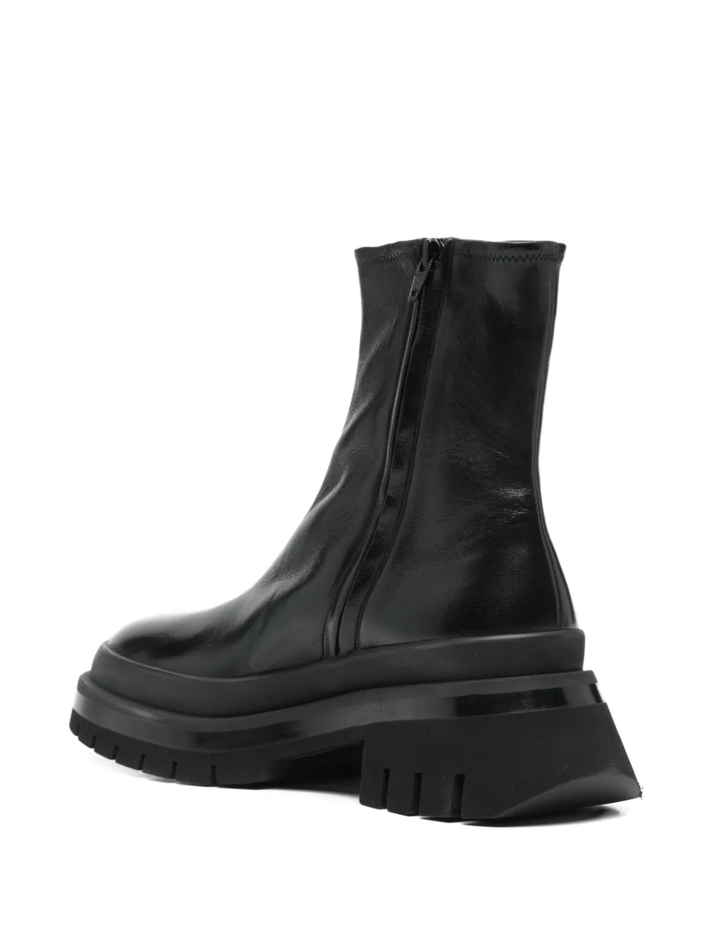 Черная обувь на массивной подошве, застежка-молния сбоку, модель без шнуровки, платформенная подошва, круглый носок. В комплекте идет защитный чехол для хранения.