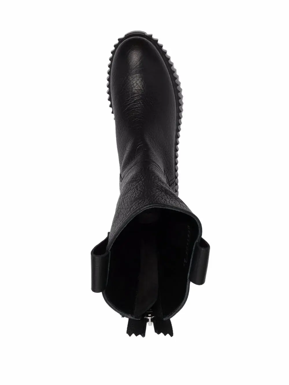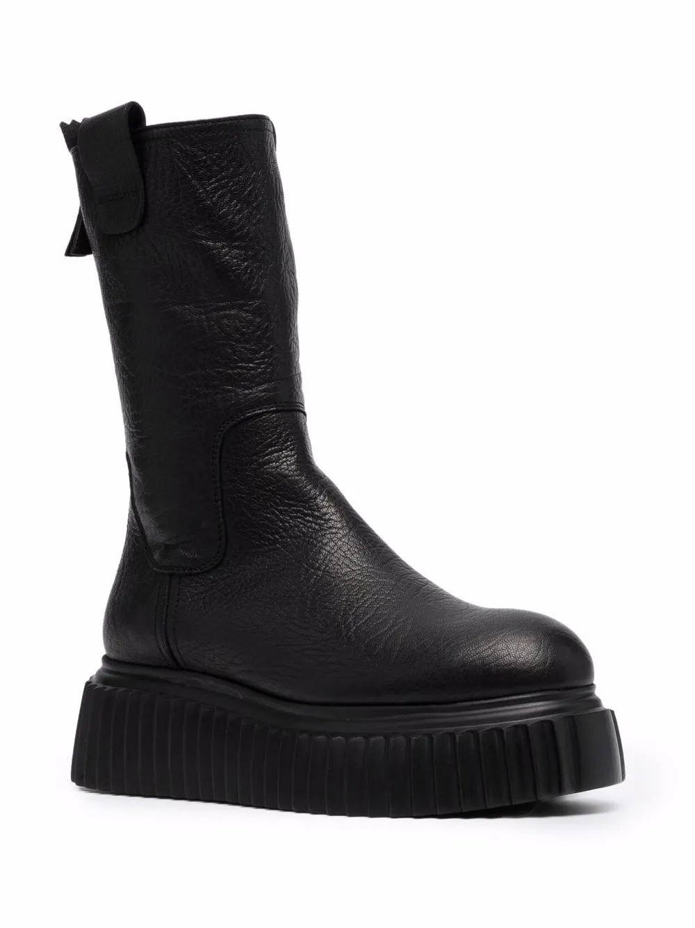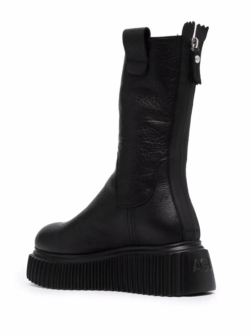 Застежка на молнии сзади, закругленный носок, ребристая резиновая подошва и подошва на платформе.