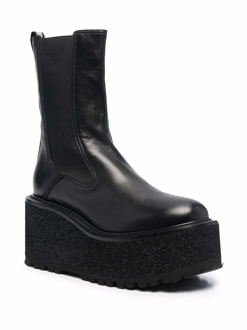 Закругленный носок, эластичные боковые панели, модель без застежки, эластичные боковые панели, петля для подтягивания сзади и подошва на платформе.