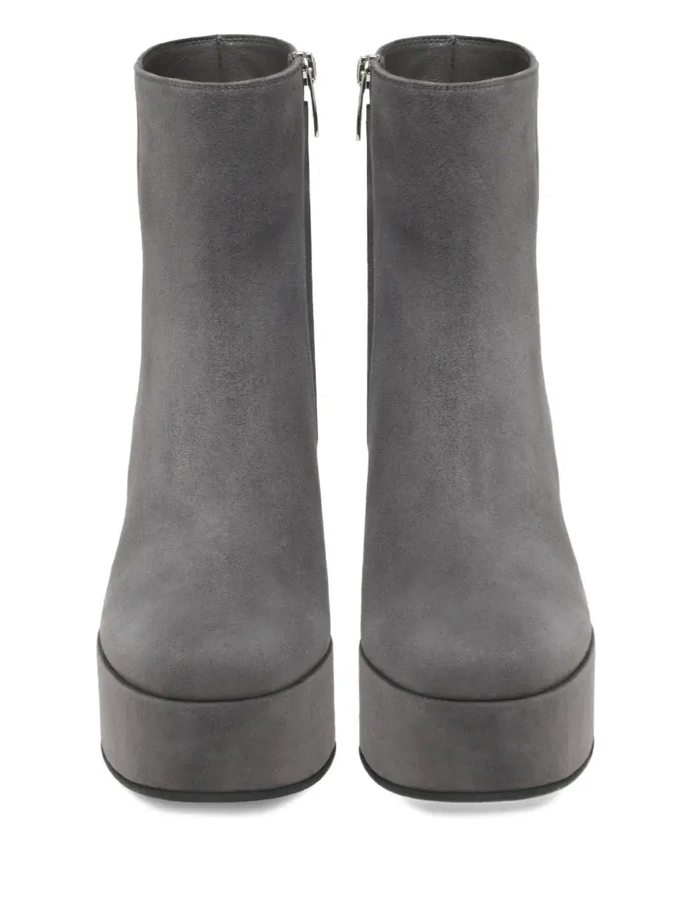 Верх из серой замши, высокая платформа, массивный каблук, застежка-молния, длина до щиколотки