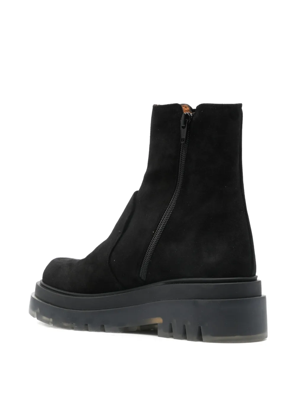 Чёрные ботинки до щиколотки, застёжка-молния, эластичные боковые вставки, рифлёная подошва