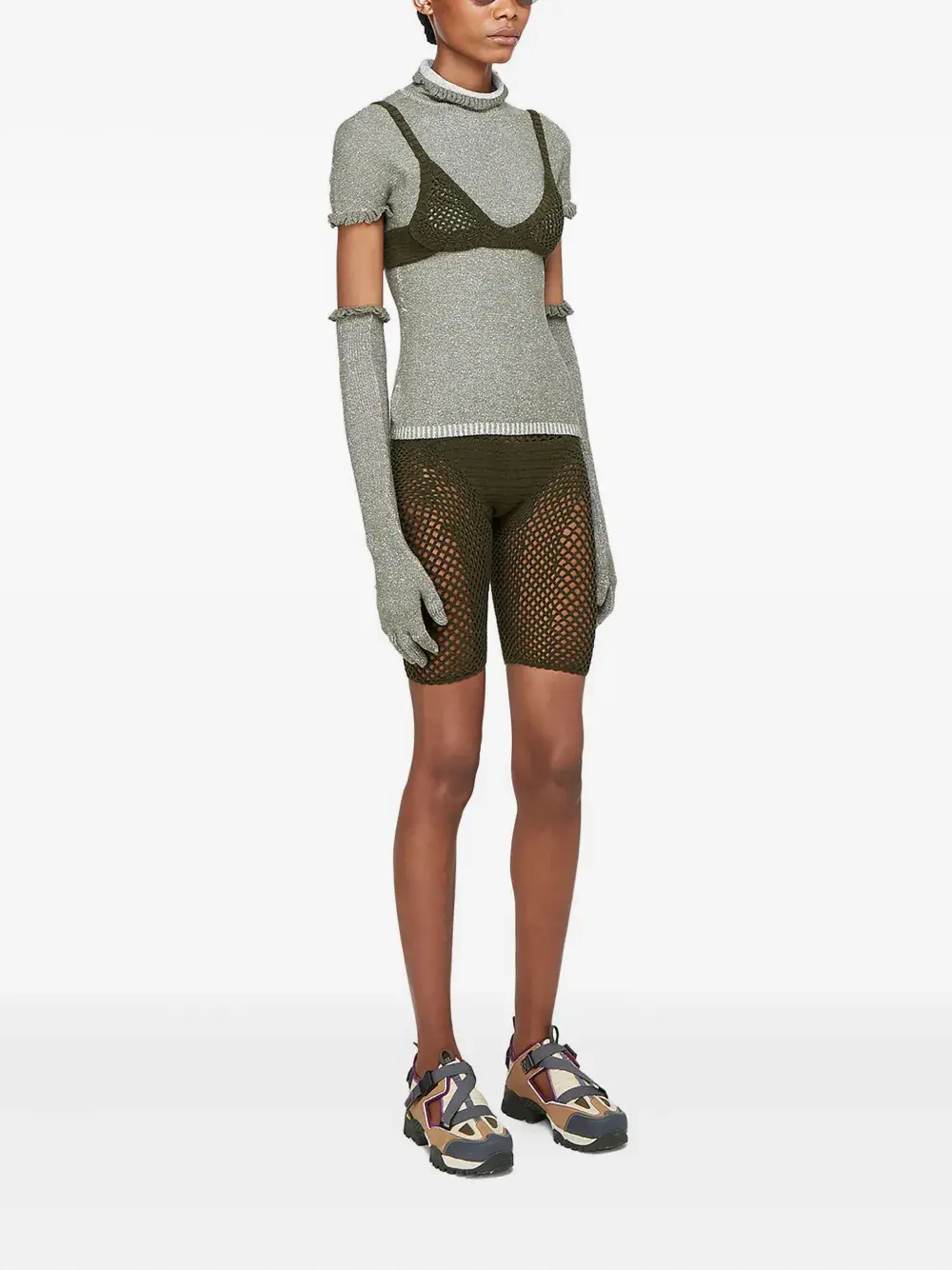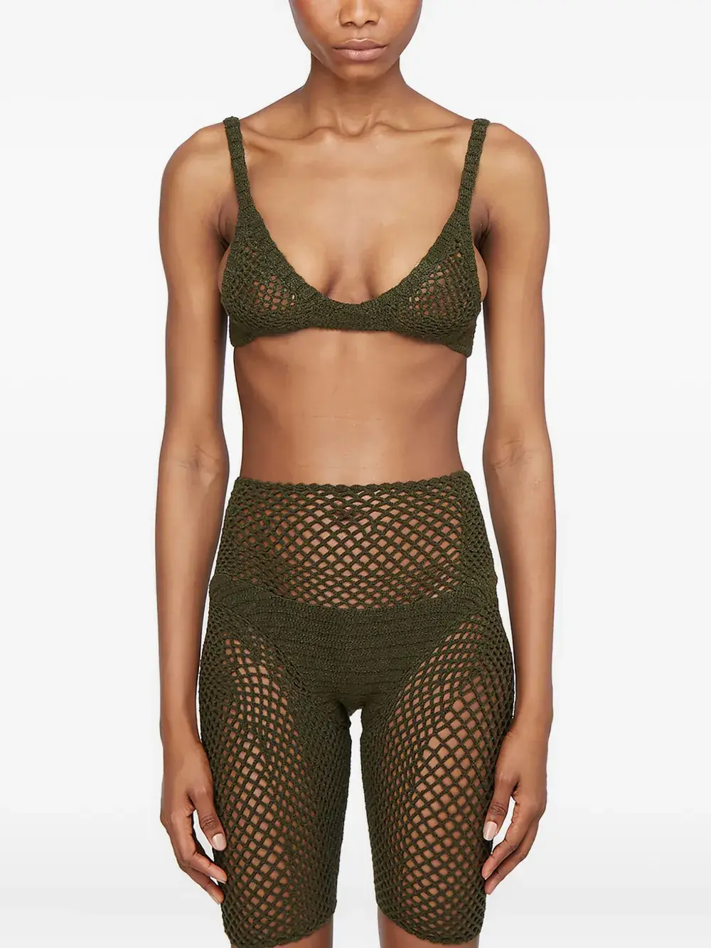 Оливково-зеленый вязаный крючком круглый вырез открытая вязка