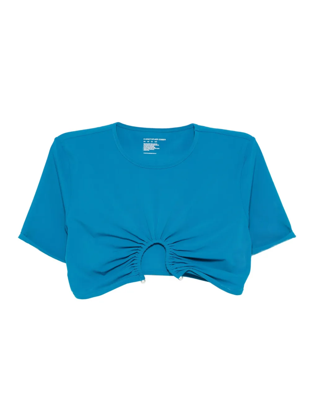 Топ с жемчужным декором и сборками Christopher Esber, синий