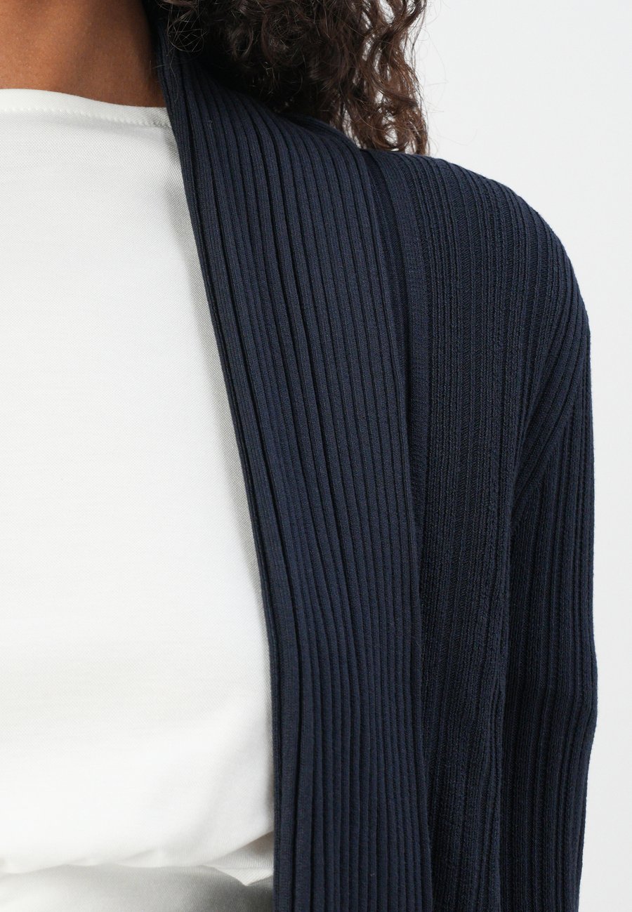 Кардиган с открытым воротником-шалью и ребристой структурой. Воротник: Шаль.Материал и уход