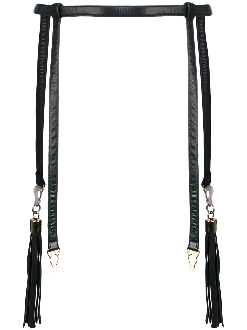 Черный кожаный пояс для чулок 'Nina' от SOMETHING WICKED.Примерка белья разрешена исключительно поверх собственного.