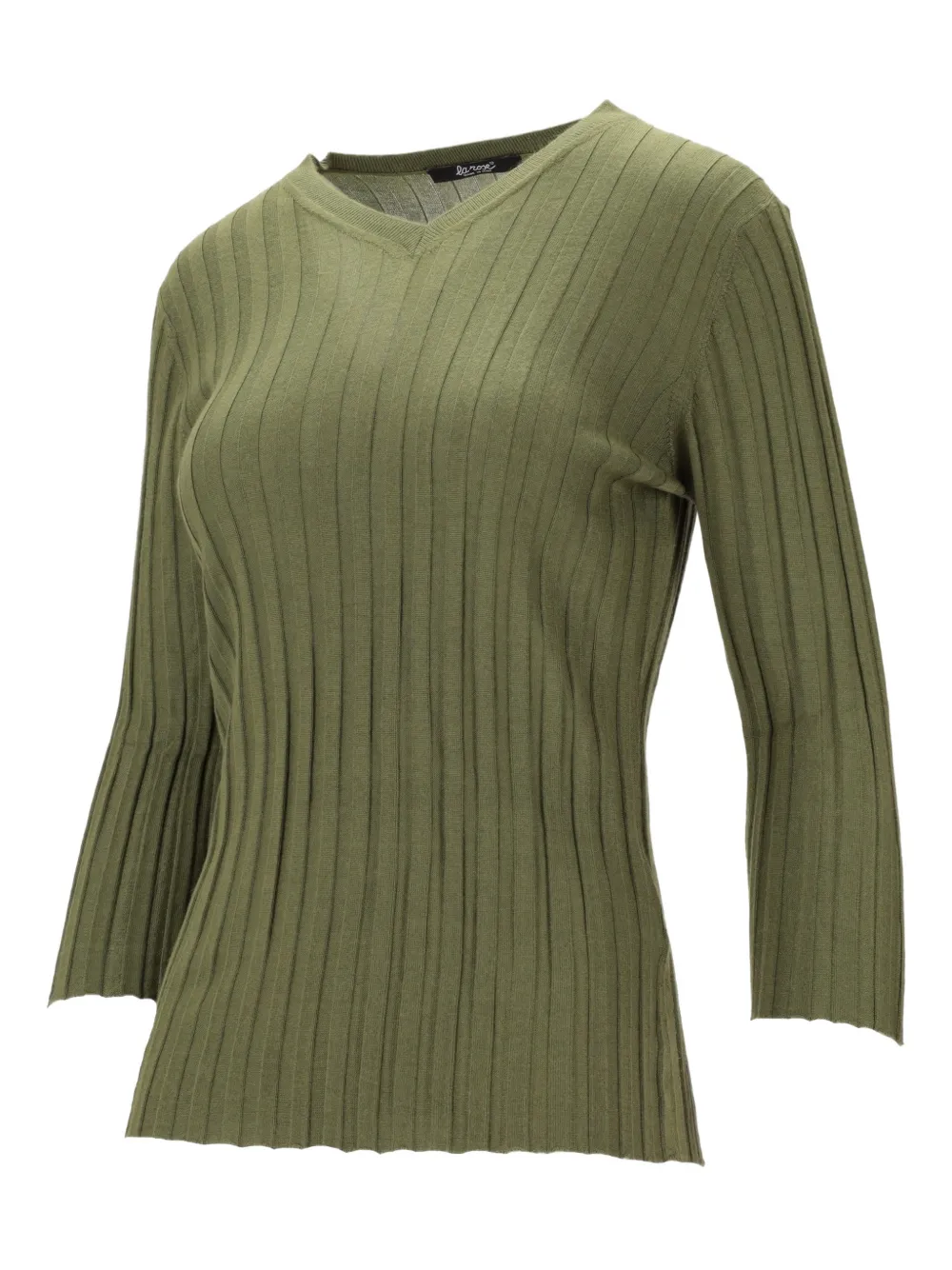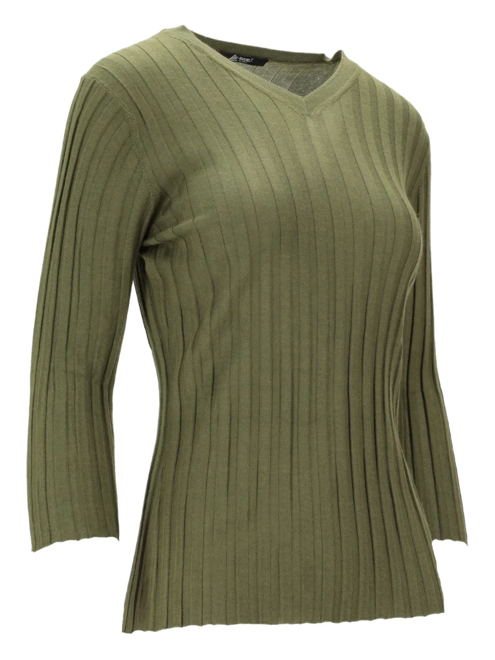 Топ в рубчик с V-образным вырезом La-Rose, зеленый