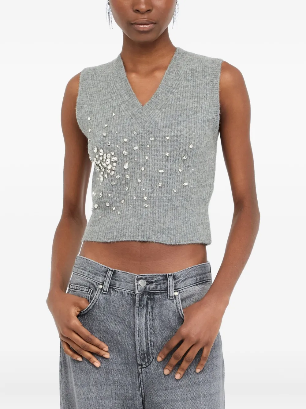 Топ в рубчик со стразами Liu Jo, серый 25 003₽