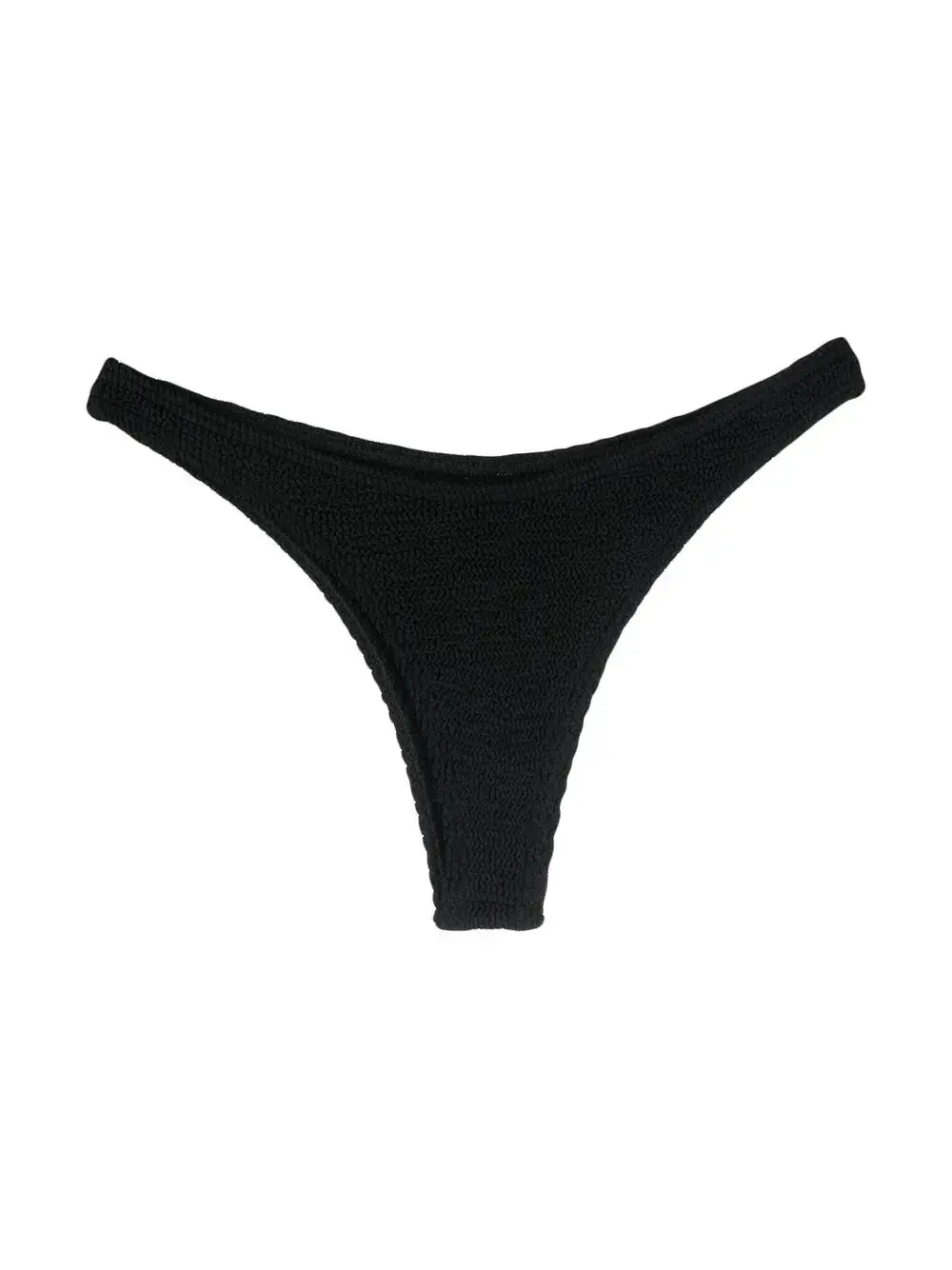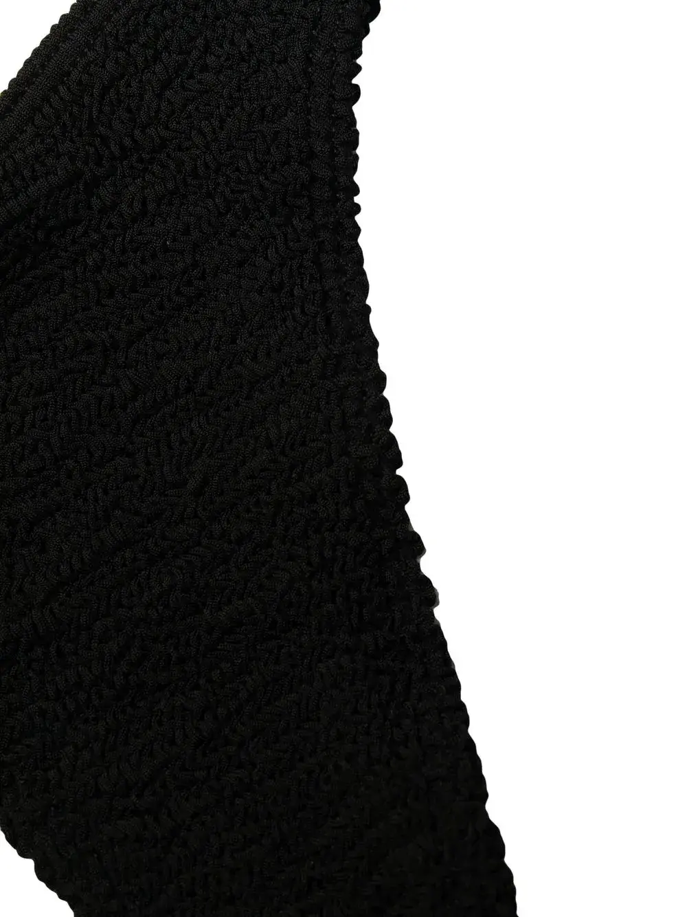 Черный, смесовый переработанный полиэстер, сирсакер с волнистой текстурой, жатый эффект, стринги и эластичный пояс.