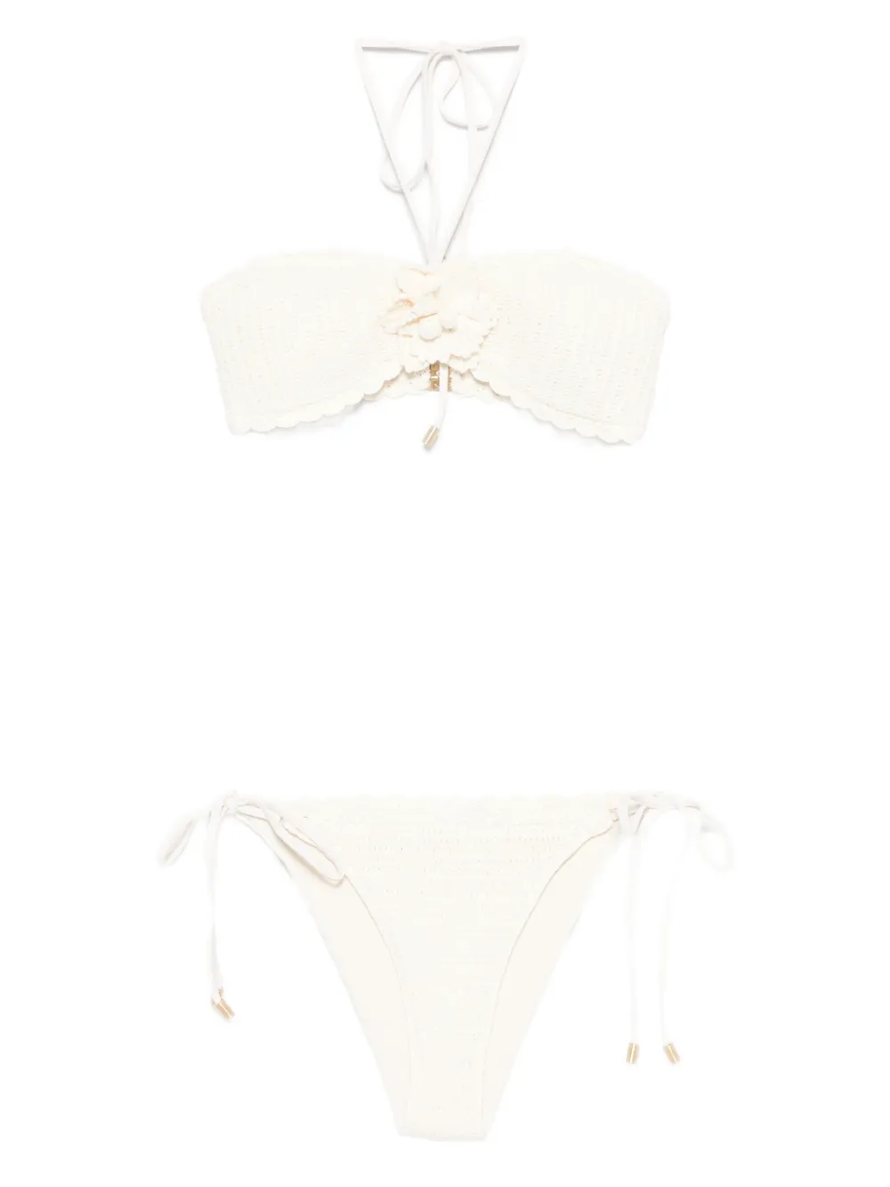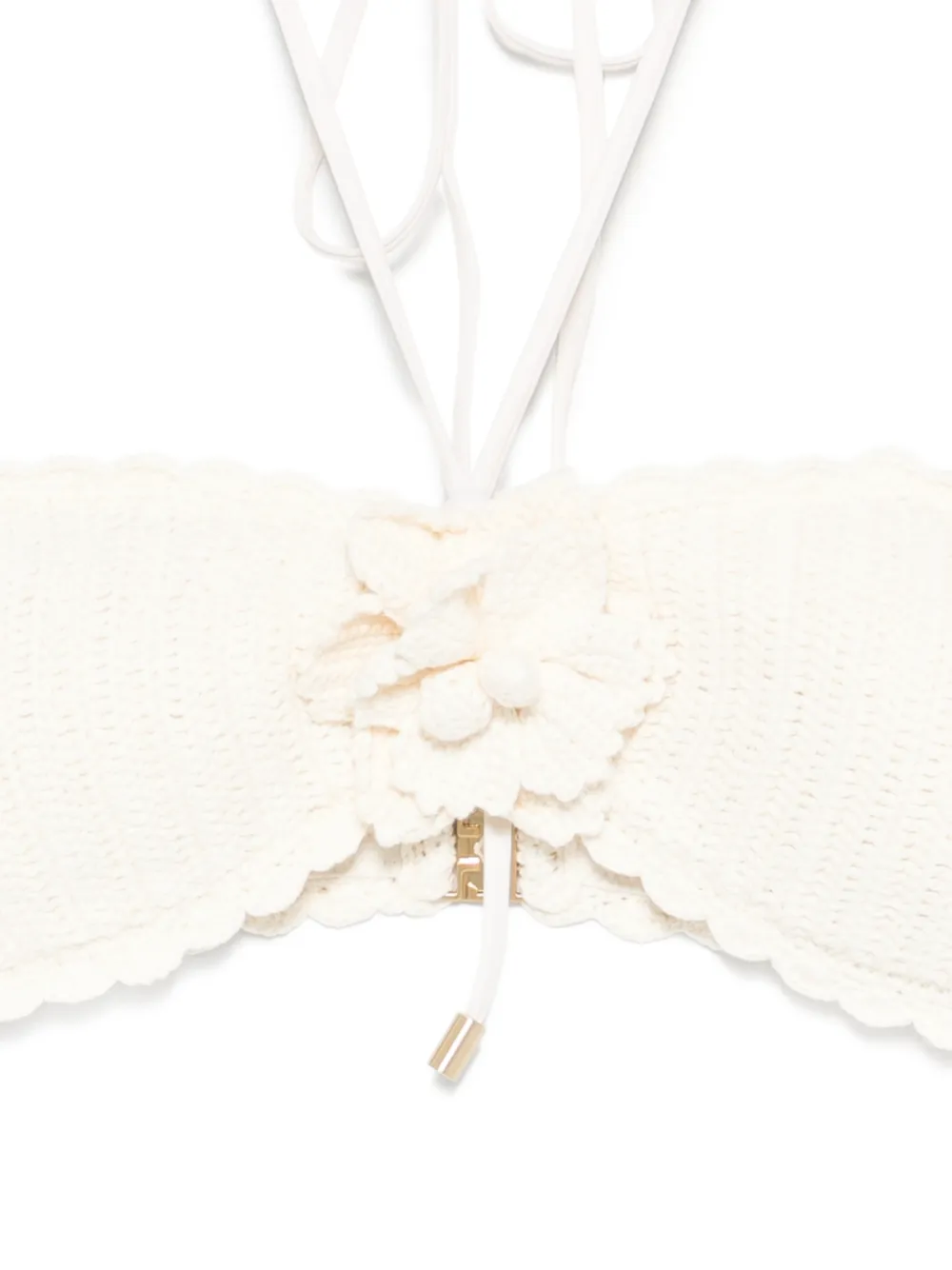 Вязаное крючком бикини с цветочным узором Zimmermann, кремовый