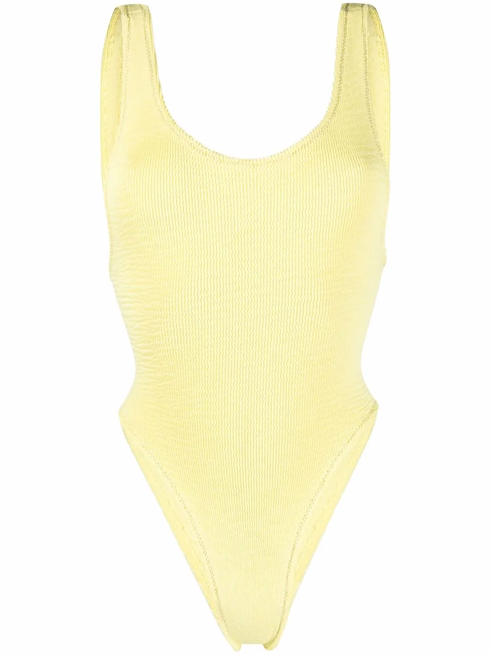 Эластичная модель, жатый эффект, U-образный вырез, низкий вырез на спине и высокий вырез.