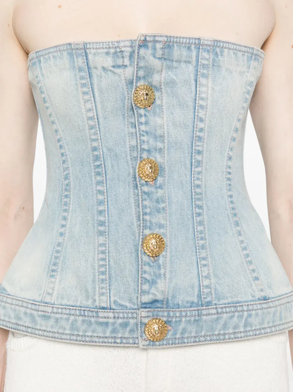 Джинсовый топ-корсет Balmain, синий 72 731₽