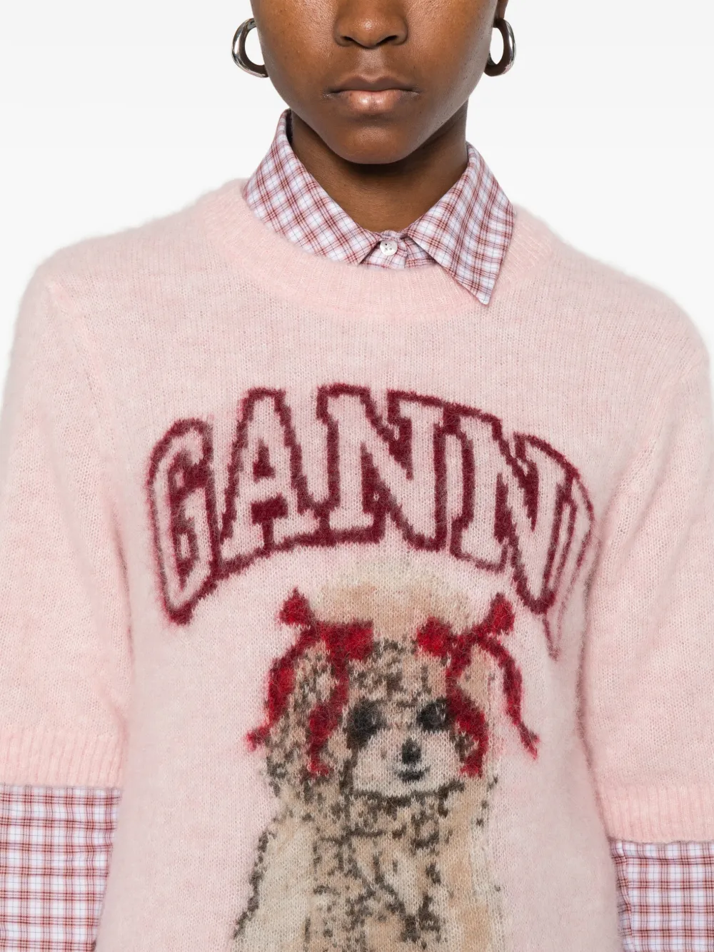 Узоратый вязаный топ Ganni, розовый