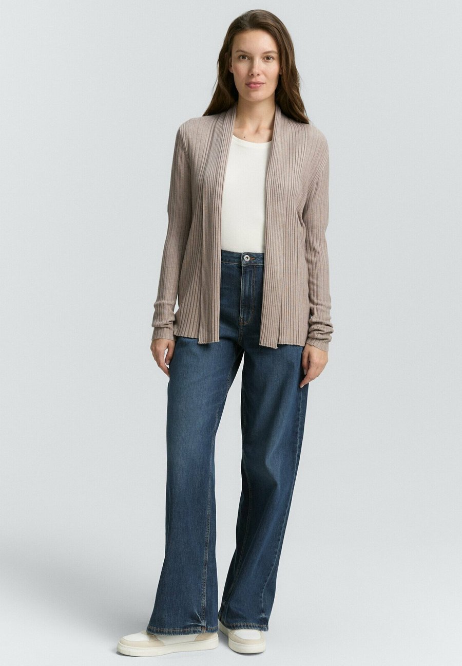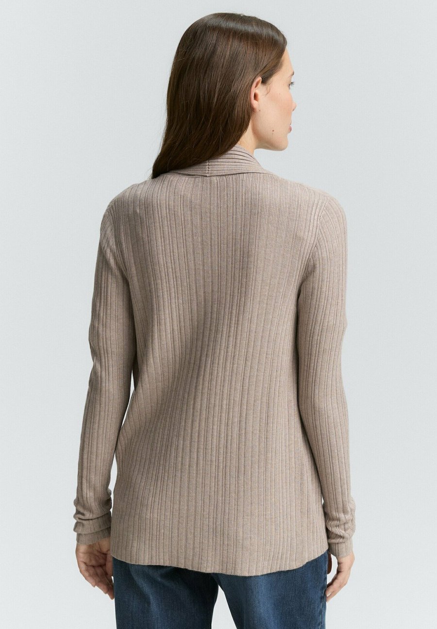 Кардиган с открытым воротником-шалью и ребристой структурой. Воротник: Шаль.Материал и уход