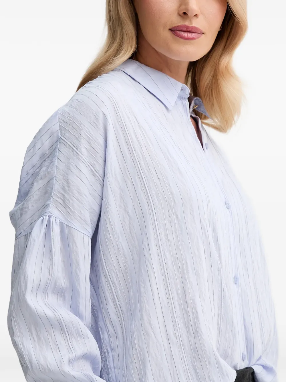 Светло-голубая рубашка в полоску, застёжка на пуговицы, длинные рукава, манжеты на пуговицах, текстурированная