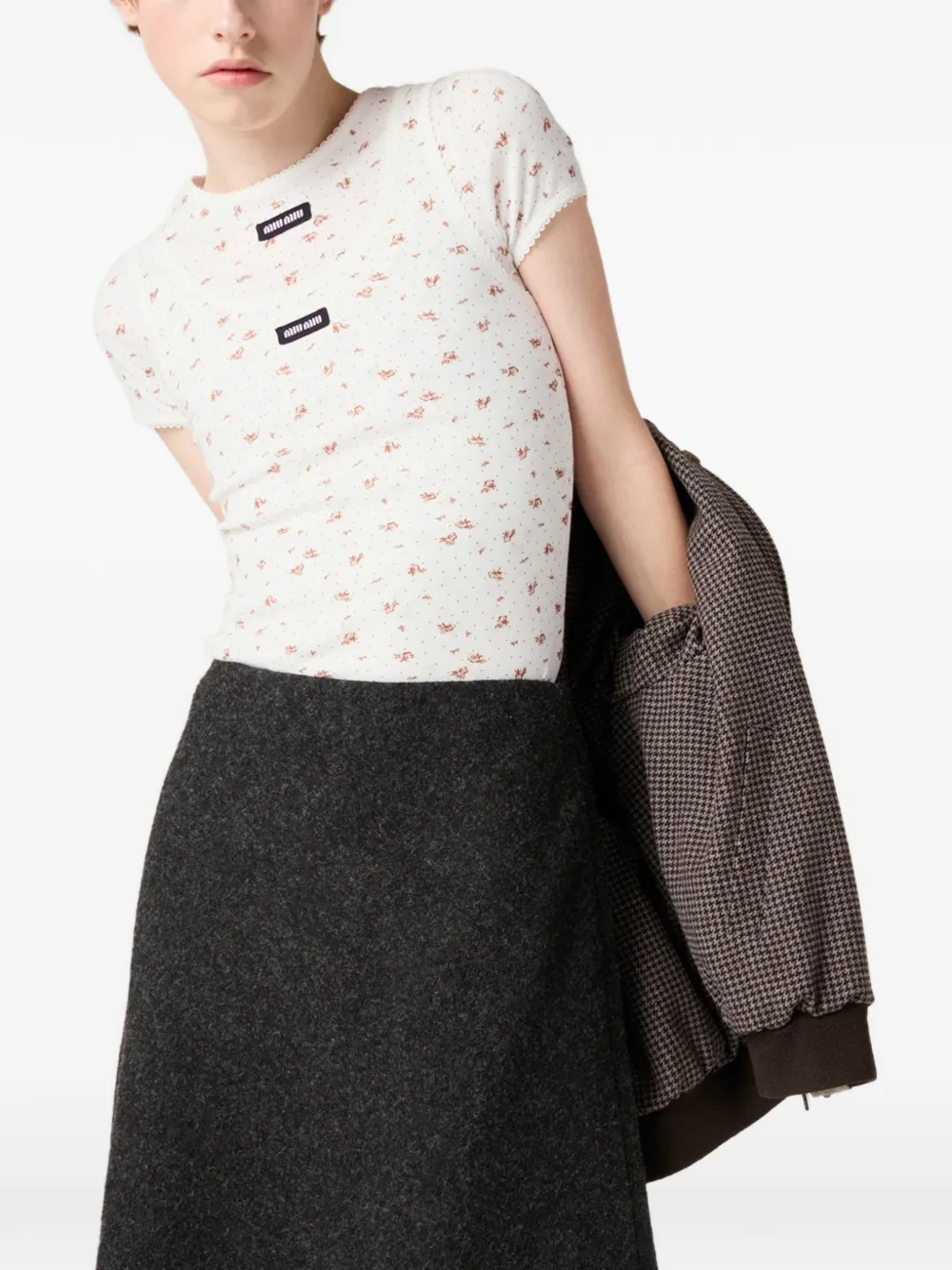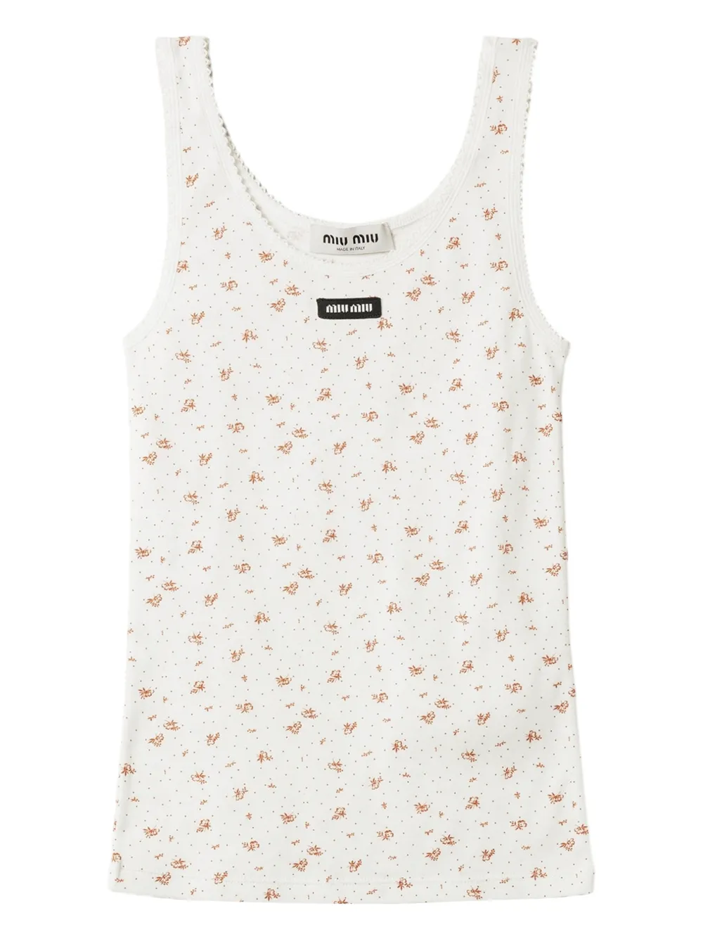 Топ с цветочным узором и логотипом Miu Miu, белый