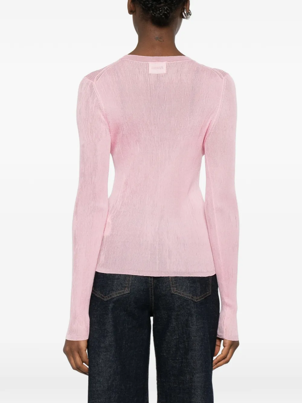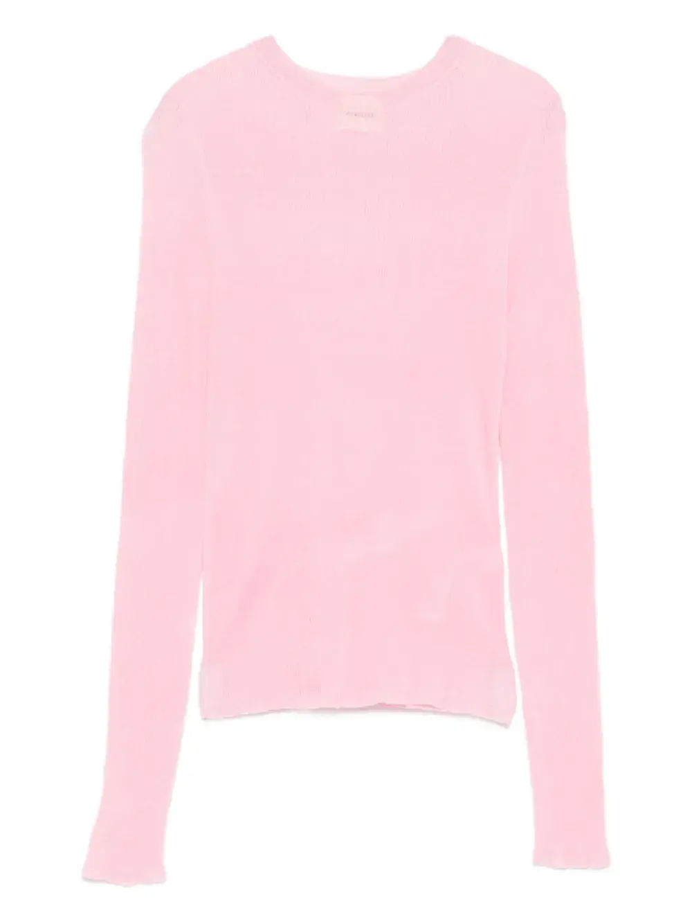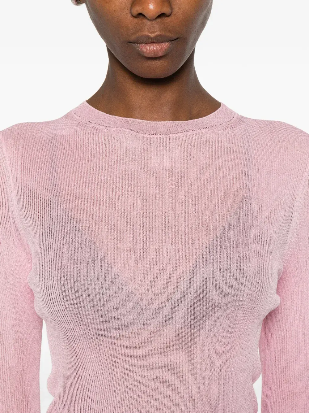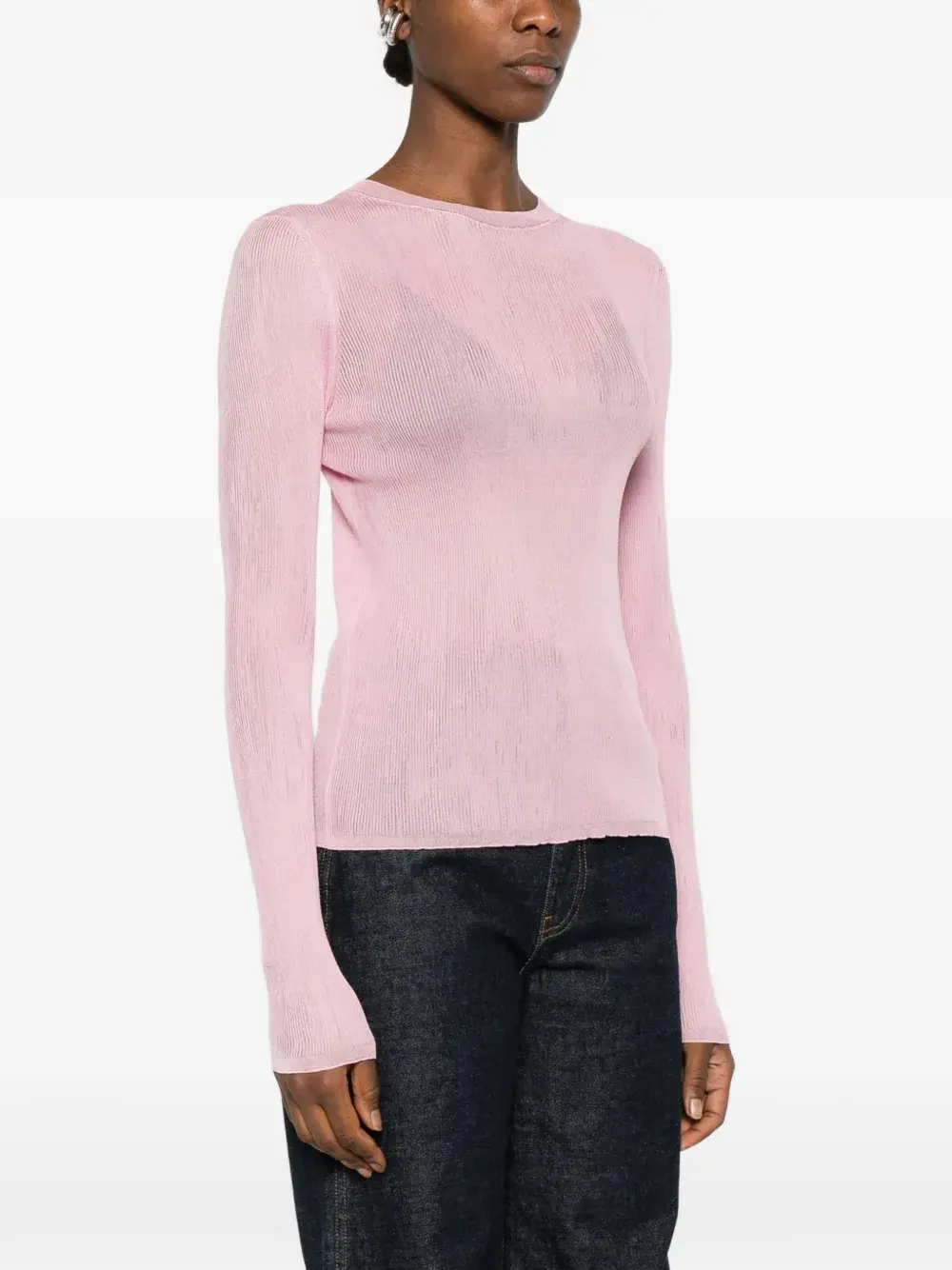Джемпер из рубчатого трикотажа цвета розовой воды с круглым вырезом, длинными рукавами и оборчатым краем