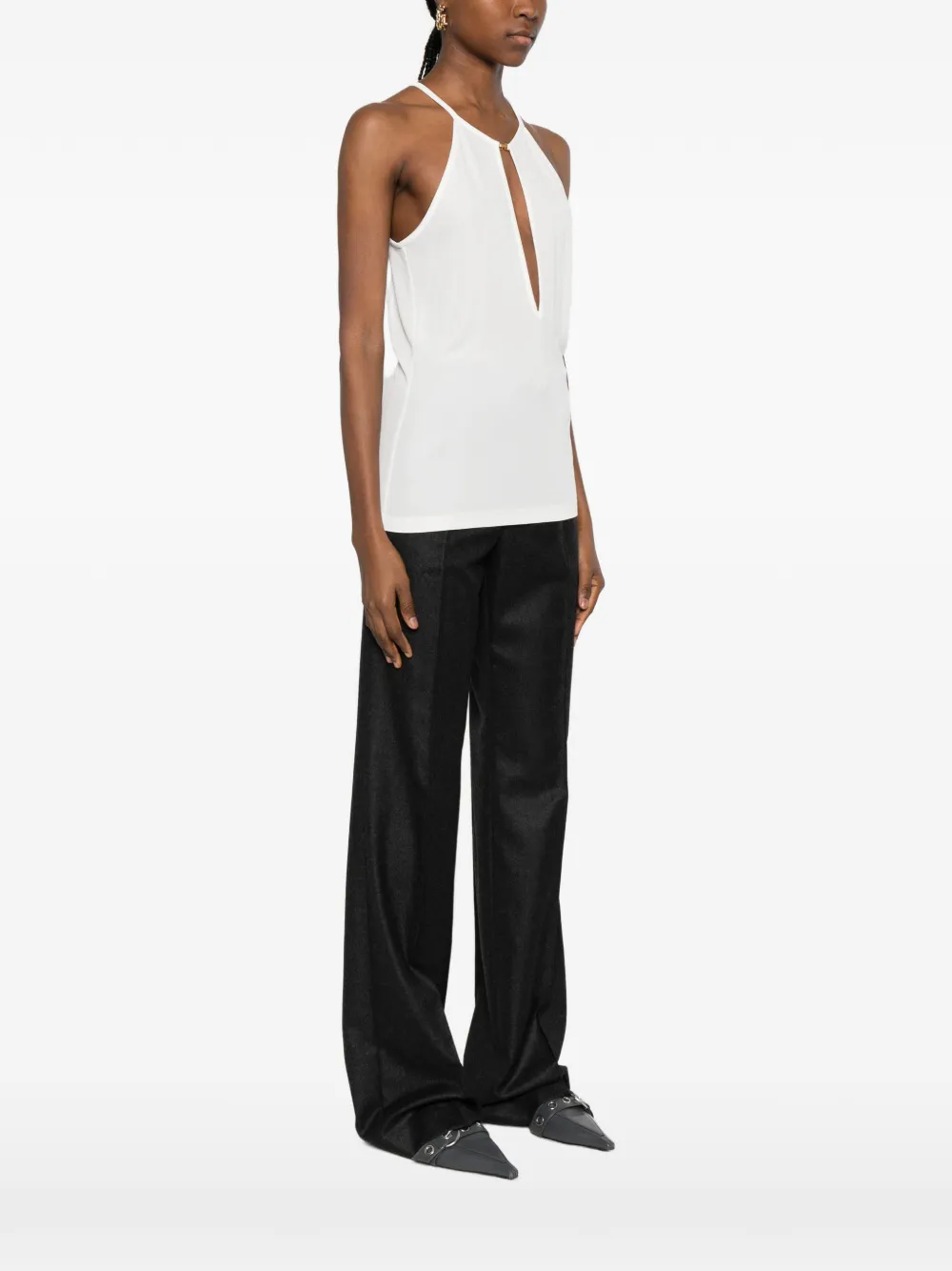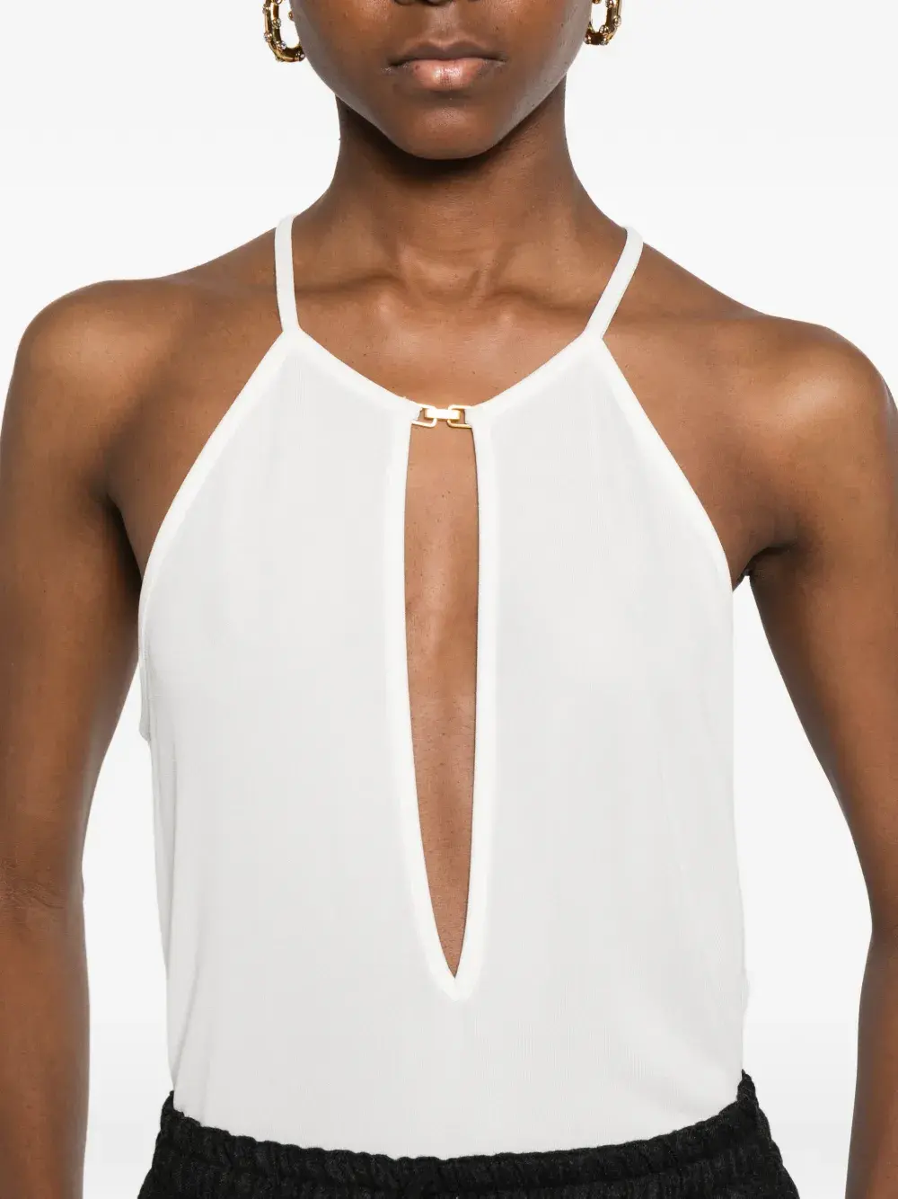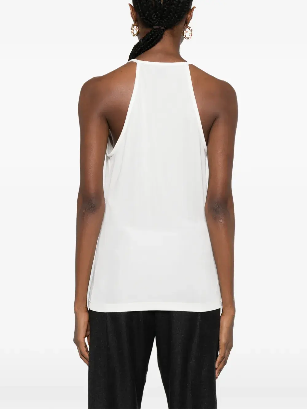 Белый топ без рукавов с ключевым вырезом и тональной строчкой