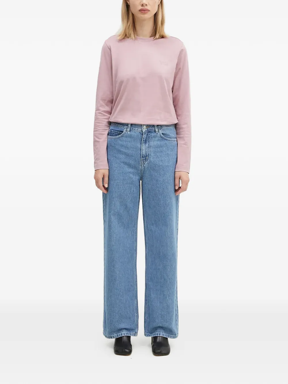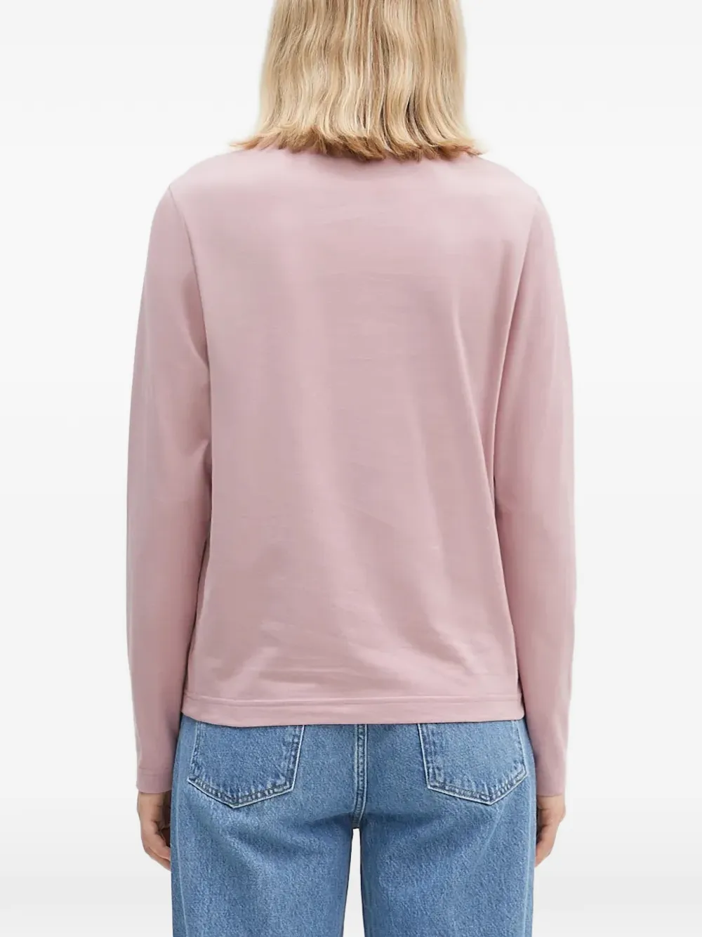 Розовый свитер с круглым вырезом и длинными рукавами