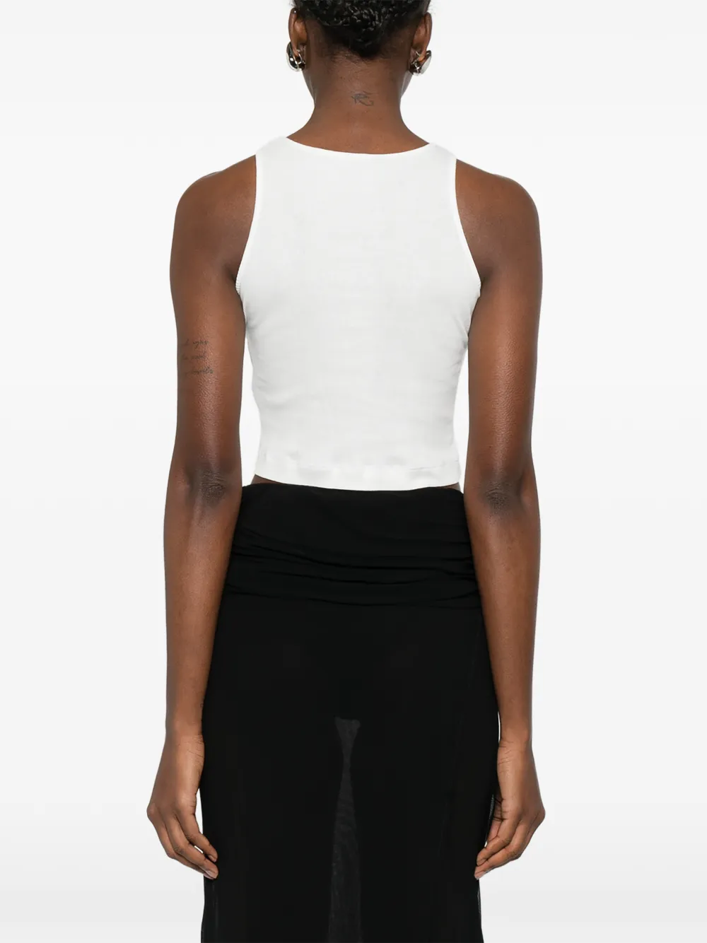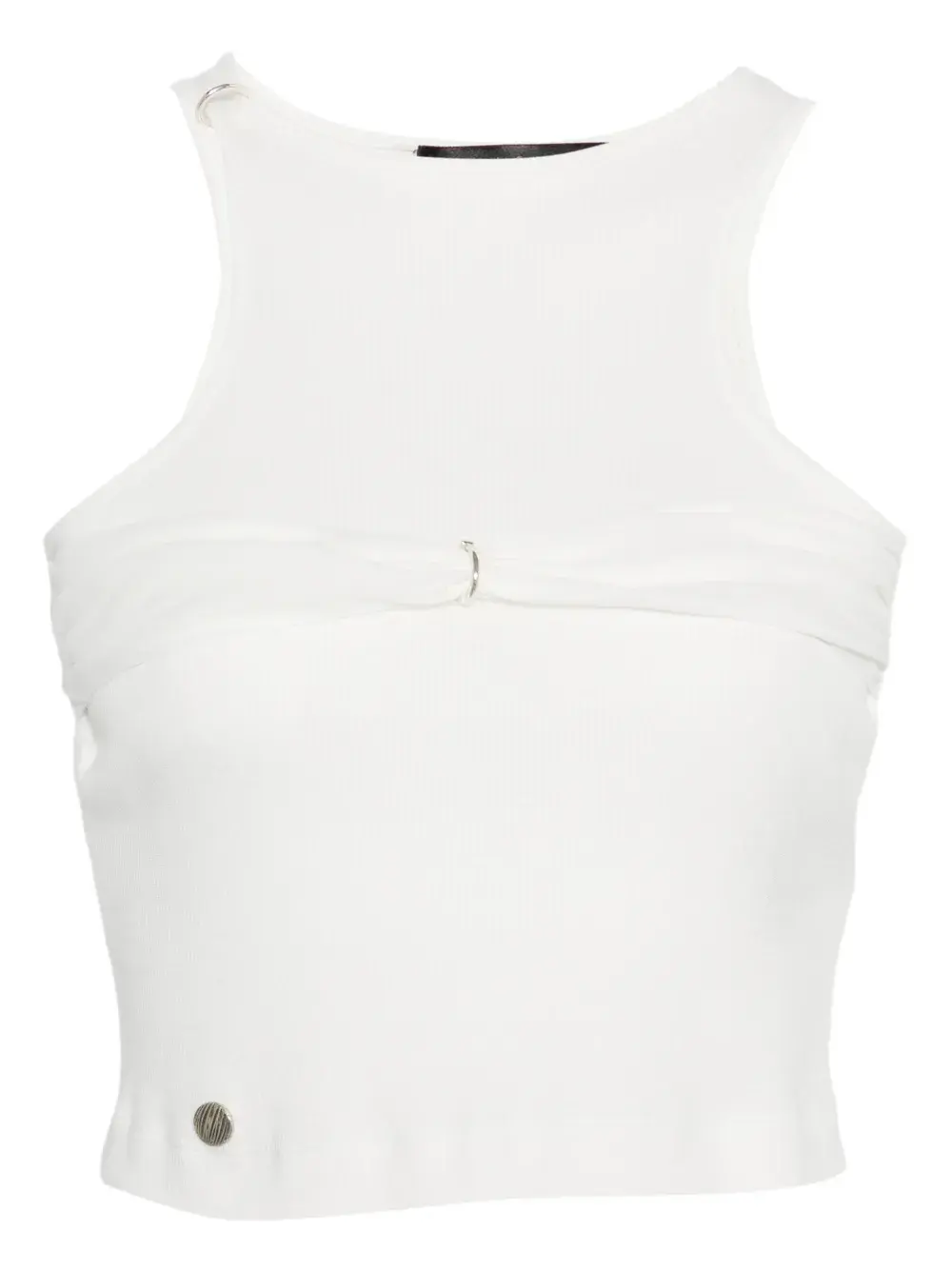 Белый трикотажный топ в рубчик с вырезами, борцовской спинкой и металлическим логотипом