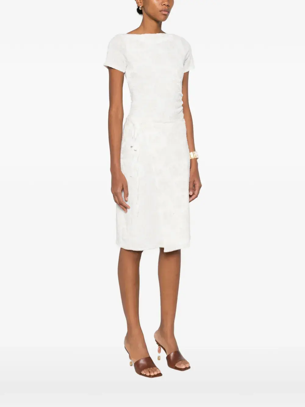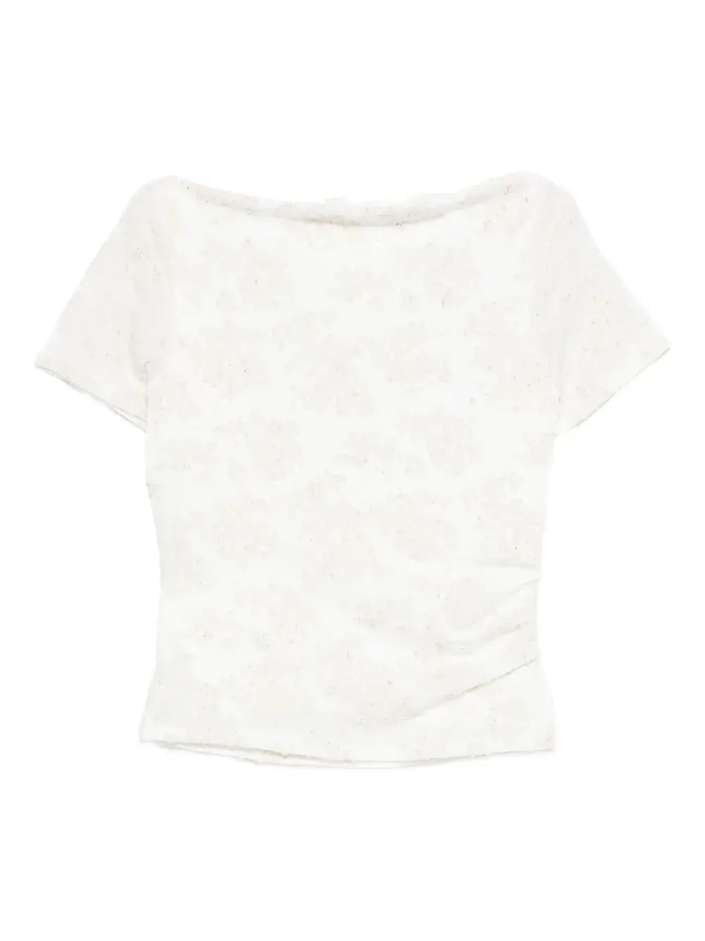 Бежевый, короткие рукава, ворот лодочка, прямой низ