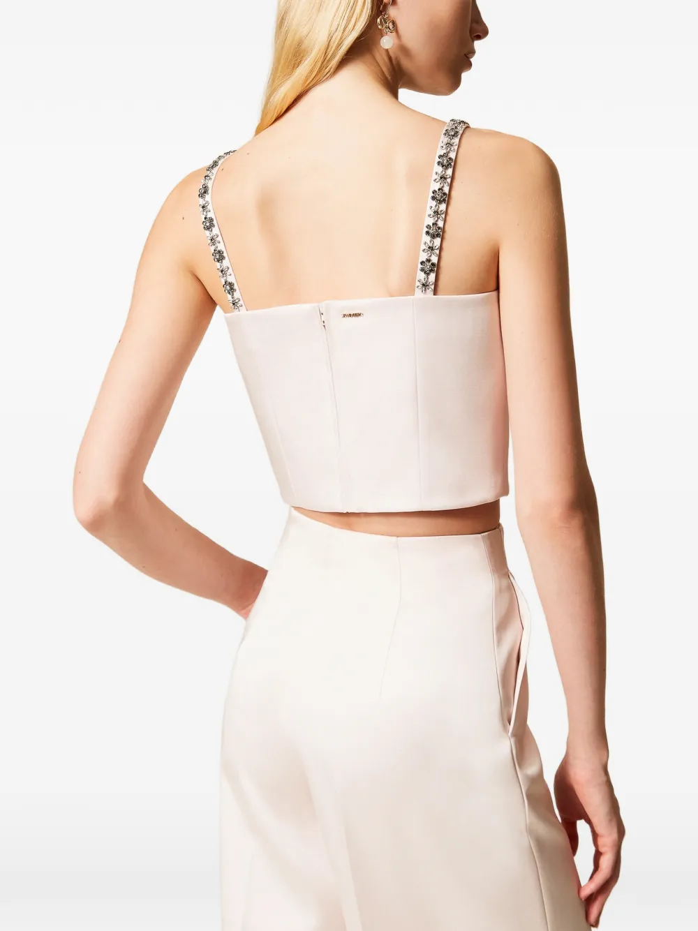 Атласный топ с вышивкой Twinset, белый 28 923₽