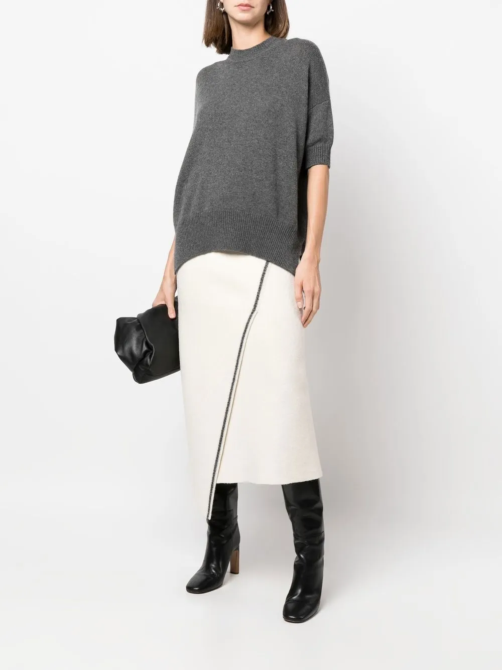 Кашемировый топ с короткими рукавами Jil Sander, серый