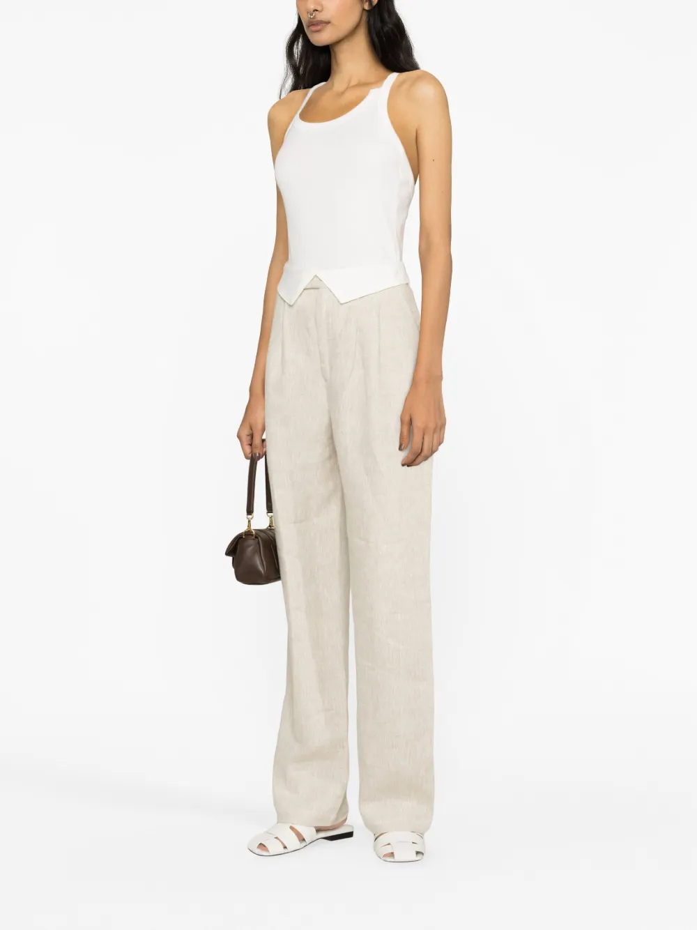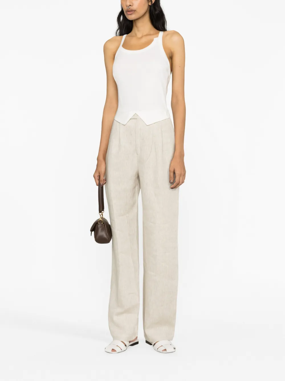 Белый, органический хлопок, асимметричная форма, U-образный вырез, тонкие бретели и прямой подол. Узнать больше о том, какие товары получают отметку «Ответственный выбор», можно из материала «Как мы оцениваем экологичность и этичность».